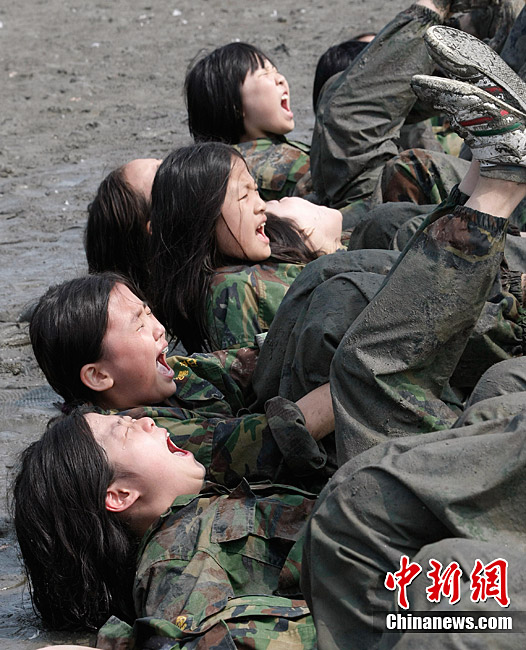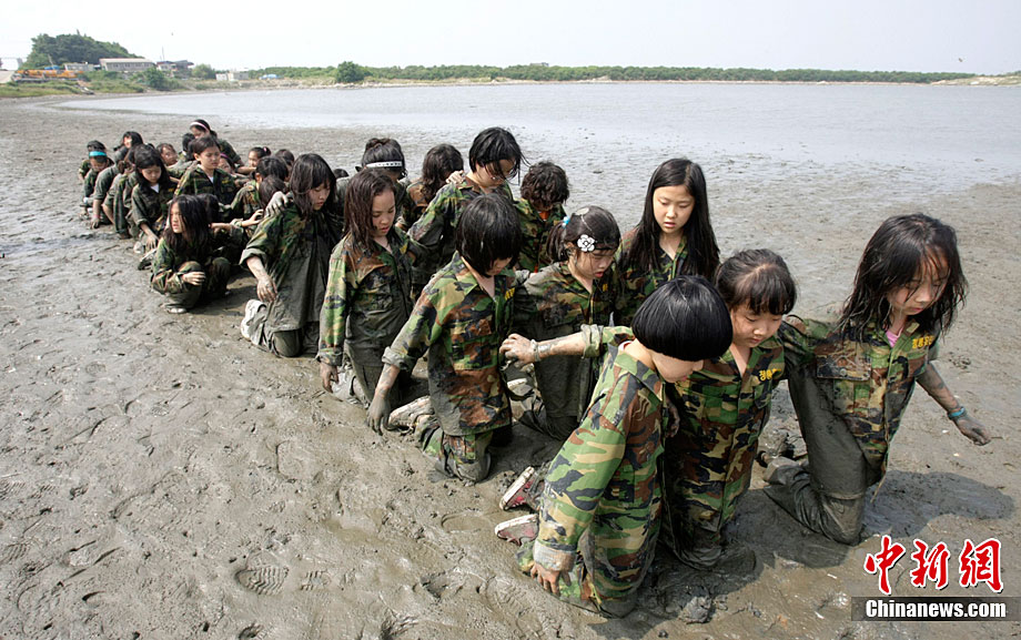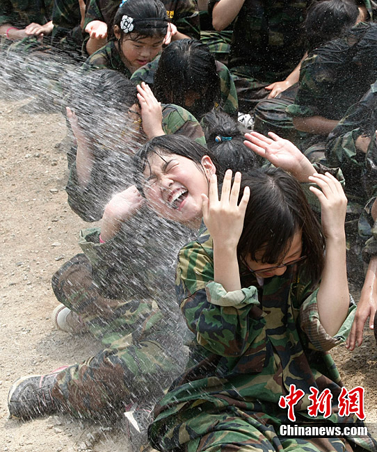 韓國小學(xué)生參加軍訓(xùn)夏令營