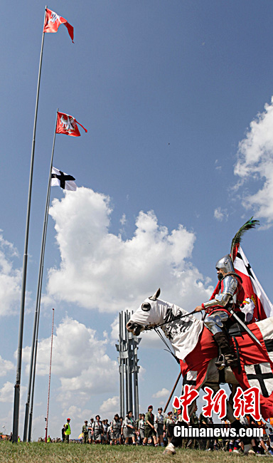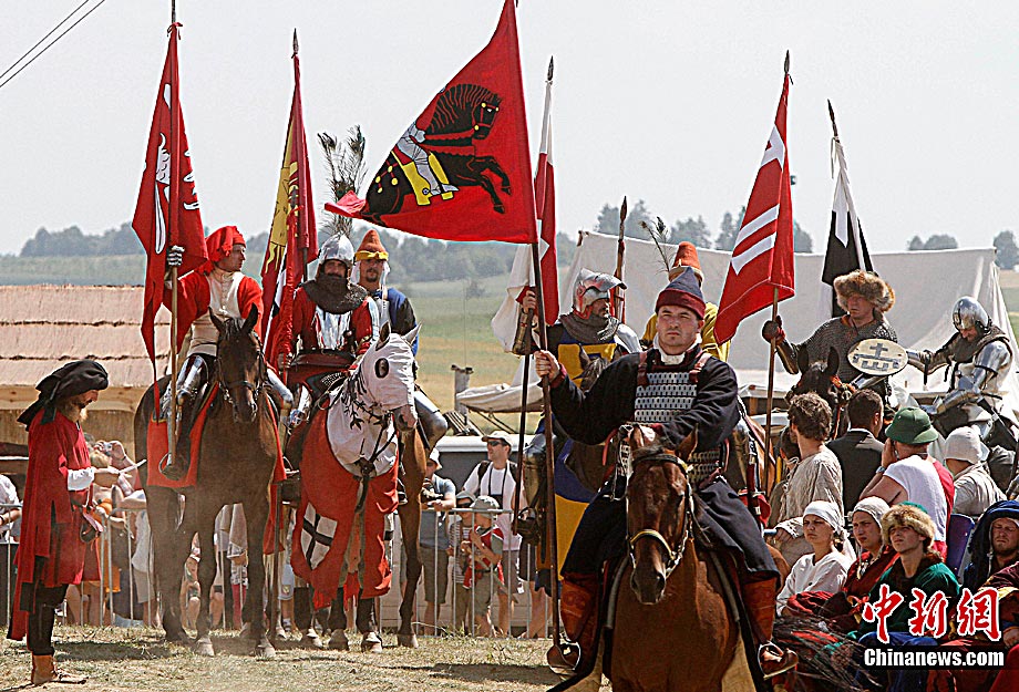 當?shù)貢r間7月15日,波蘭“格隆瓦爾德之戰(zhàn)”600周年紀念日,約1500名身著古代騎士服的“騎士”從歐洲各國來到波蘭北部重現(xiàn)了這場著名的戰(zhàn)役。格隆瓦爾德之戰(zhàn),發(fā)生于公元1410年,是波蘭國王兼立陶宛大公雅蓋沃領(lǐng)導抗擊條頓十字軍團的戰(zhàn)爭。在此戰(zhàn)中,擊斃當時十字軍包括大團長在內(nèi)幾乎全部的高級首腦,也是十字軍沒落的一個標志,此戰(zhàn)后新的大團長撤出馬爾堡,從此十字軍一蹶不振。