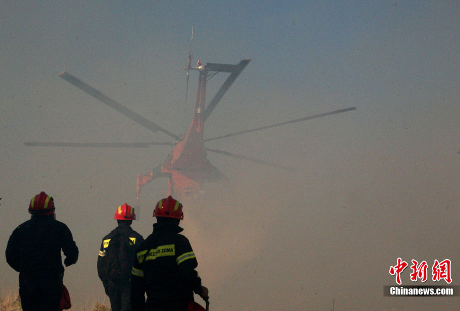 當?shù)貢r間7月17日中午開始希臘首都雅典近郊發(fā)生至少兩起山火,當?shù)叵啦块T出動消防員、飛機和直升機進行滅火。但由于天干物燥,加上風力很大,滅火工作面臨很大困難。消防部門說,不少樹木被大火燒毀,沒有造成人員傷亡。為防止意外,火災發(fā)生地附近的居民已經(jīng)被疏散。