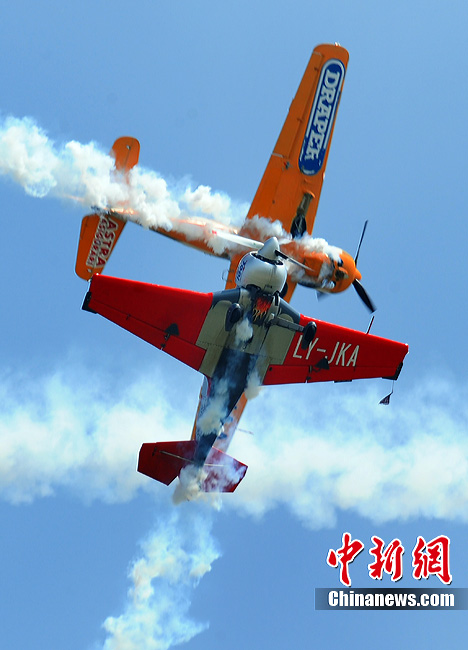 當?shù)貢r間7月17日,來自世界各地60多架老式飛機參加了在羅馬尼亞首都布加勒斯特北郊亨利·科安達國際機場舉行的2010飛行表演。