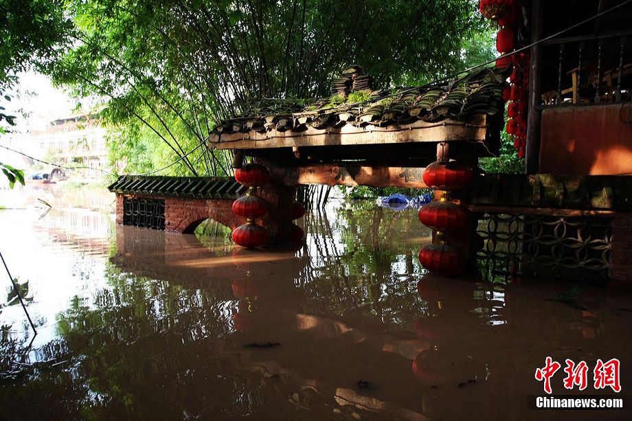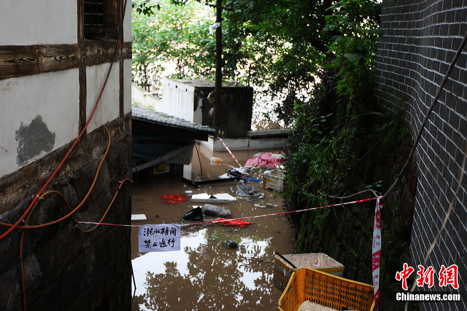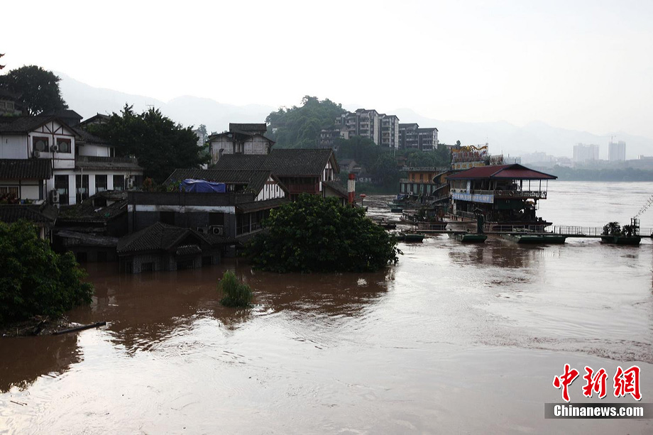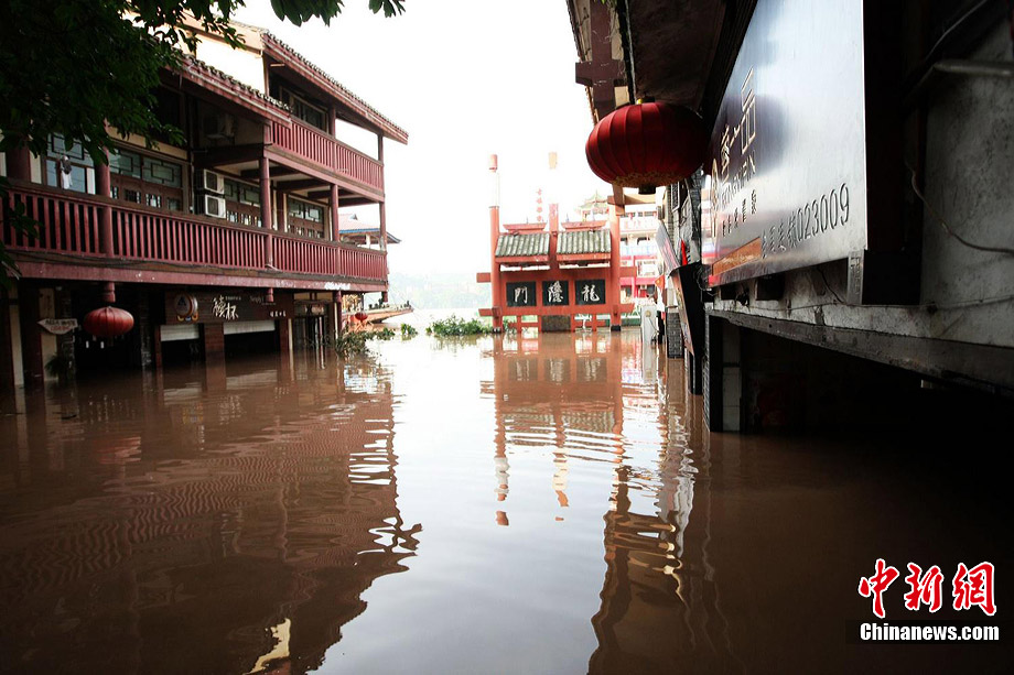 7月19日,今年入汛以來(lái)最大洪峰經(jīng)過(guò)重慶主城,長(zhǎng)江、嘉陵江水位上漲。記者在重慶古鎮(zhèn)磁器口看到,從磁器口江邊至磁器口街道的梯坎已“隱”于水面下,標(biāo)志性牌匾龍隱門沒(méi)至“腰部”,靠近江邊的商鋪及民居被淹。目前,大部分商家、市民接預(yù)警已提前撤場(chǎng)歇業(yè)或撤離至安全地帶。截至記者趕赴磁器口途中,部分必經(jīng)路段已實(shí)施交通管制,磁器口正街漲水期間亦采取禁行措施。據(jù)長(zhǎng)江水利委員會(huì)水文局監(jiān)測(cè)數(shù)據(jù),19日20時(shí)長(zhǎng)江重慶寸灘站水位超過(guò)185米,這是重慶遭遇的長(zhǎng)江今年以來(lái)最大洪峰。截至20日0時(shí),長(zhǎng)江重慶水位仍在185.06米的峰值上流動(dòng),洪峰仍在過(guò)境重慶。 劉函冉 攝