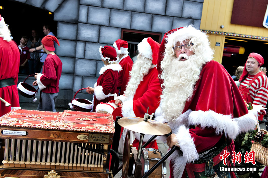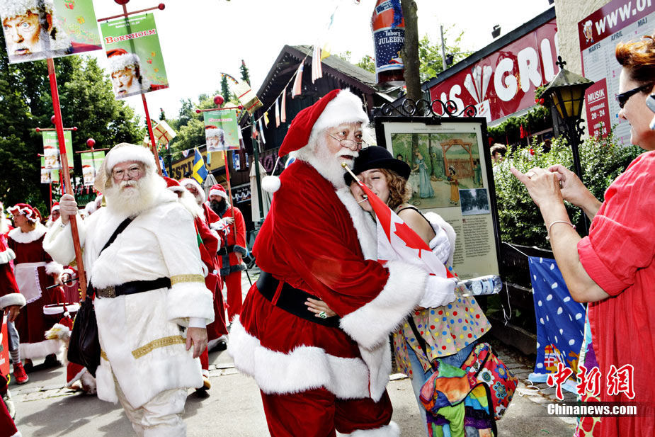 7月19日,丹麥?zhǔn)锥几绫竟瑏?lái)自世界各地的圣誕老人舉行游行,慶祝一年一度的世界圣誕老人大會(huì)。當(dāng)天,120多名來(lái)自世界各地的圣誕老人齊聚哥本哈根。