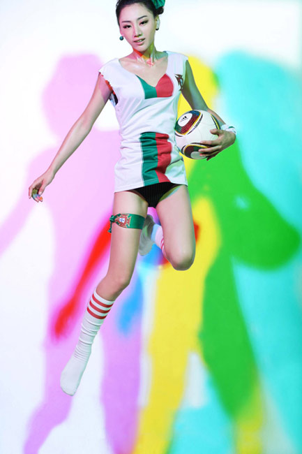 出生于1989年的金美辛是一位美麗的足球?qū)氊悺=,金美辛拍攝一套性感照片懷念世界杯葡萄牙隊和C羅。