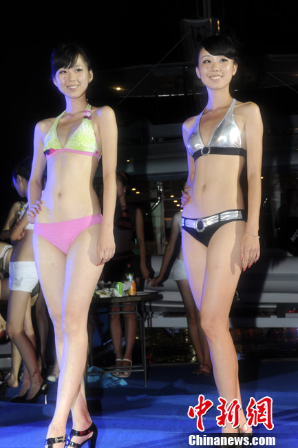 7月25日,2010青島國(guó)際海洋節(jié)盛大開(kāi)幕。當(dāng)晚,在青島奧帆中心的游艇上舉行了一場(chǎng)活力四射的比基尼派對(duì)。中新網(wǎng)記者 田博川 攝