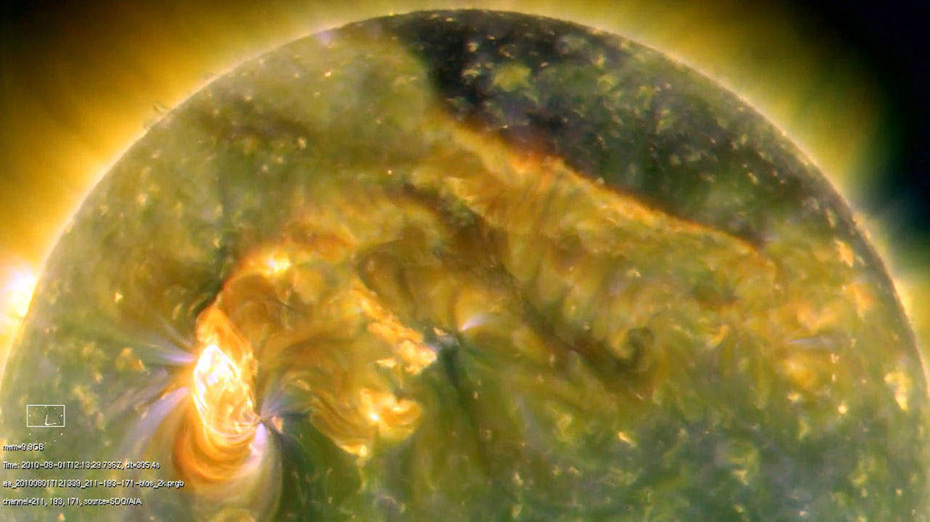 據(jù)英國(guó)媒體2日?qǐng)?bào)道,各國(guó)天文臺(tái)近日觀測(cè)到太陽(yáng)表面發(fā)生劇烈的太陽(yáng)風(fēng)暴,科學(xué)家預(yù)測(cè),攜帶大量帶電粒子的太陽(yáng)風(fēng)預(yù)計(jì)于4日抵達(dá)地球,在兩極產(chǎn)生強(qiáng)烈的極光現(xiàn)象。圖為8月3日,NASA公布了太陽(yáng)動(dòng)力學(xué)觀測(cè)衛(wèi)星(SDO)1日通過(guò)極紫外線(xiàn)相機(jī)拍攝到的太陽(yáng)北半球耀斑爆發(fā),耀斑下的太陽(yáng)黑子足有地球大小。(NASA圖)