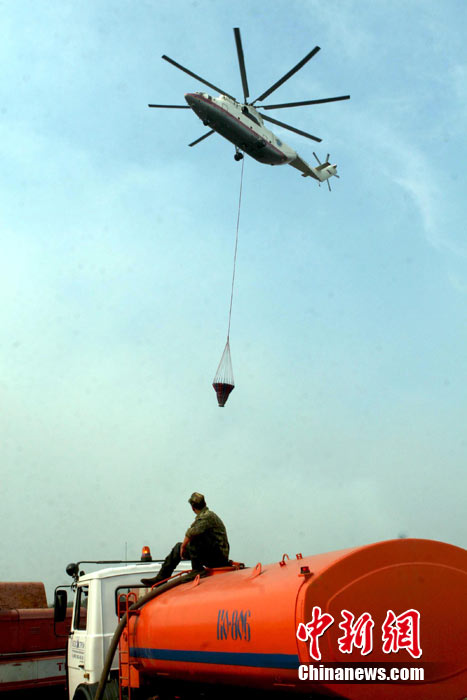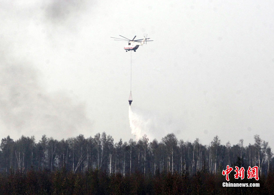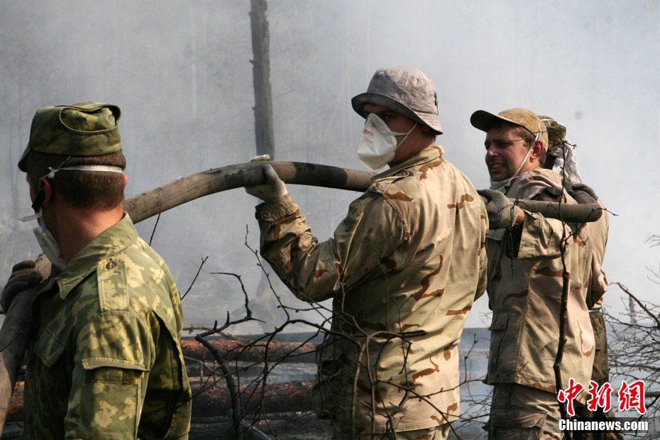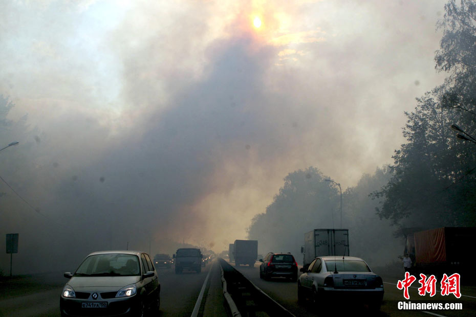8月5日,在距離莫斯科市區(qū)僅15公里處的一家加油站附近突然燃起森林大火,情勢非常危急。當(dāng)?shù)孛癖娮园l(fā)與消防人員全力滅火。中新社發(fā) 田冰 攝