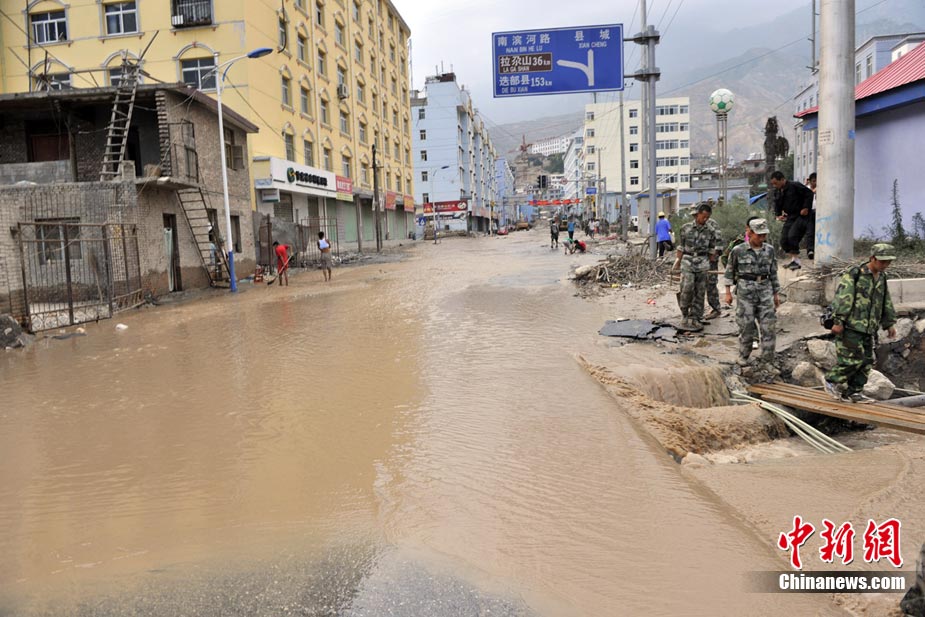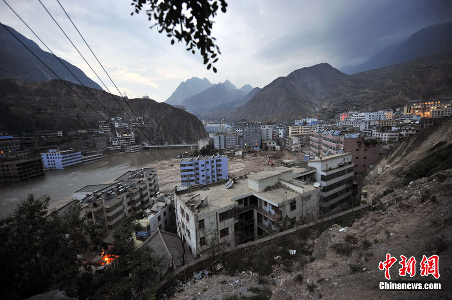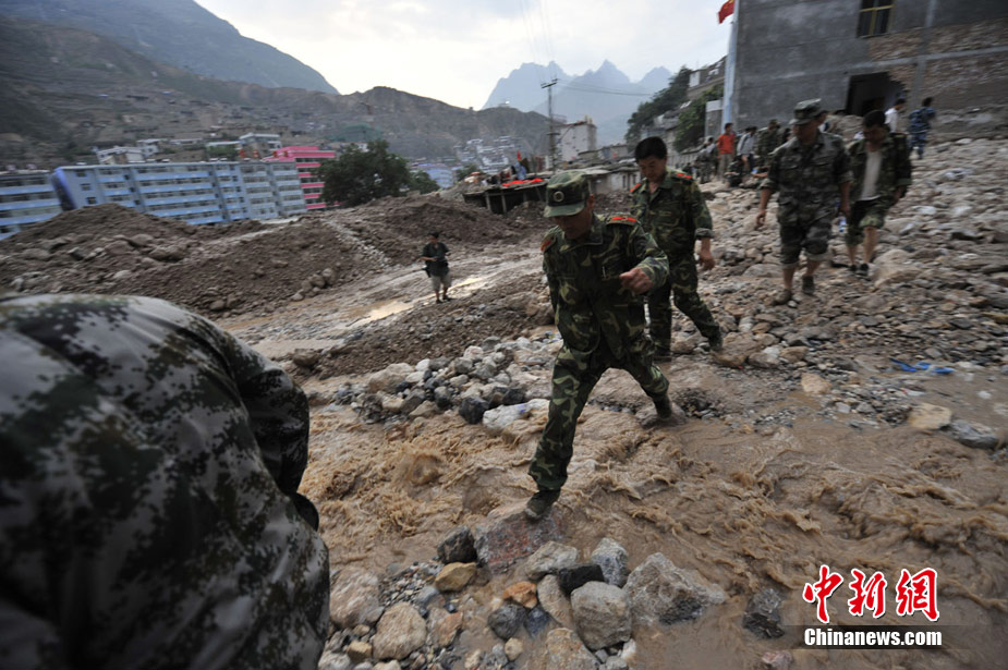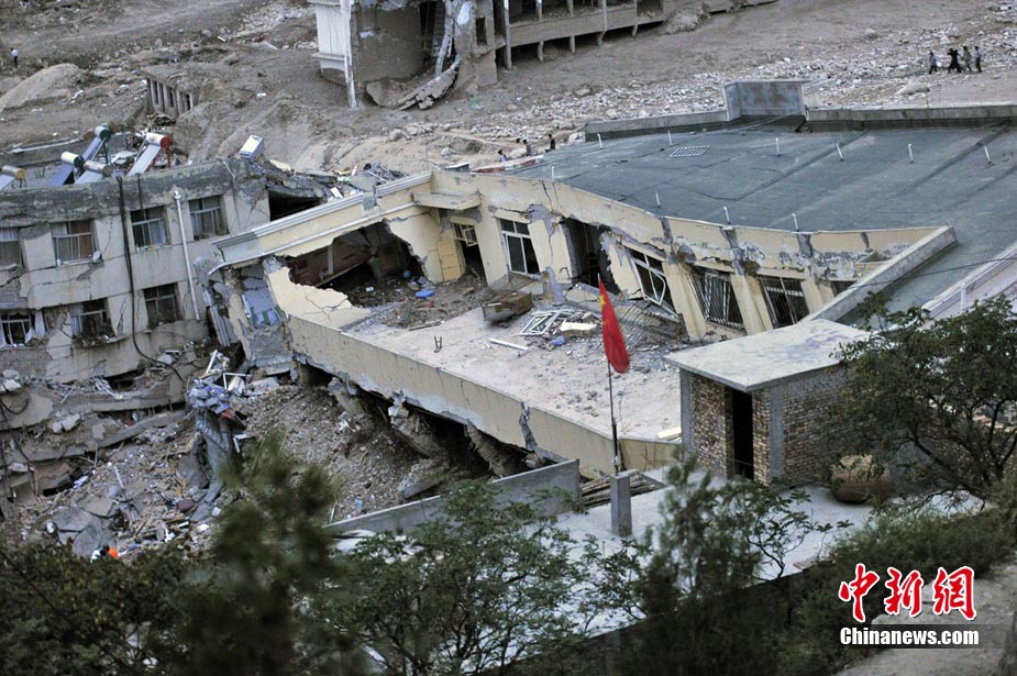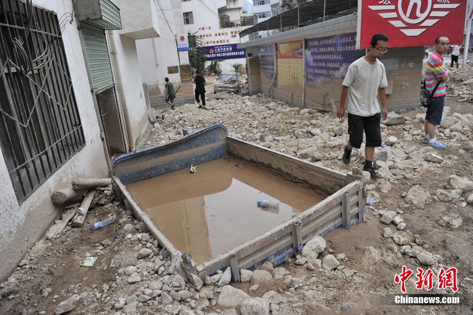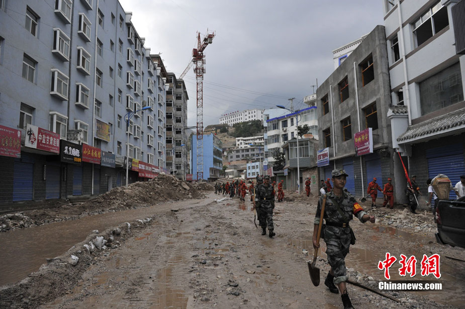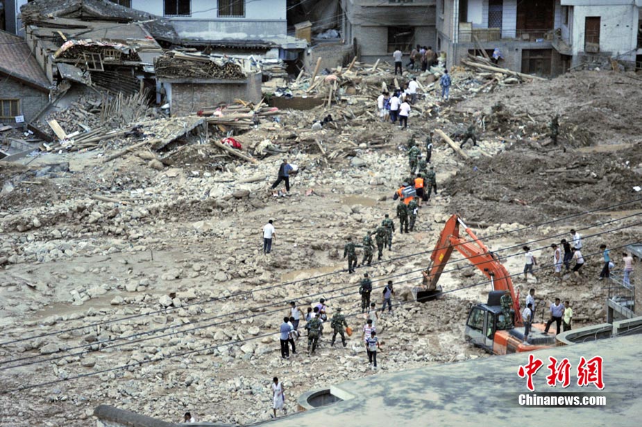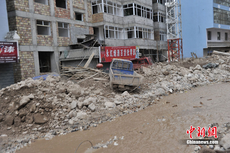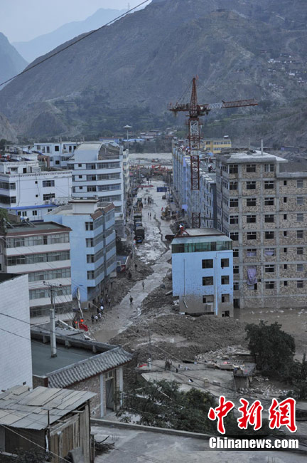 8月9日,甘肅省舟曲縣被泥石流沖毀的房屋和街道。8日凌晨,甘肅省舟曲縣因強(qiáng)降雨引發(fā)滑坡泥石流,造成重大人員傷亡,電力、交通、通訊中斷。中新網(wǎng)記者 金碩攝