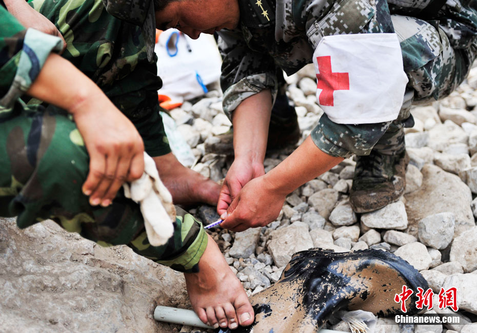 8月10日 舟曲救援進入到第三天,解放軍武警官兵們在廢墟中尋找著一切希望。中新網記者 金碩 攝