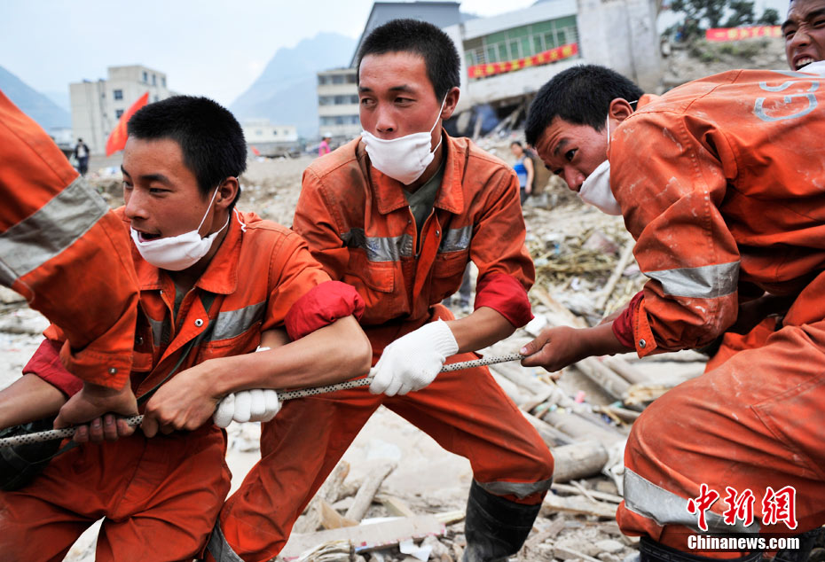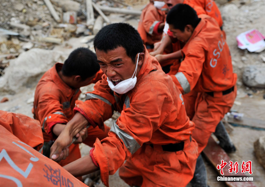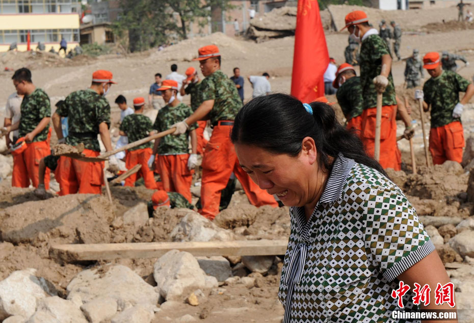 2010年8月11日,甘肅舟曲縣發(fā)生特大泥石流災(zāi)害后的第四天,目前救援工作仍在繼續(xù)。截至10日17時,泥石流災(zāi)害死亡人數(shù)已達(dá)702人,失蹤人員1042人,42人重傷。中新網(wǎng)記者 金碩 攝