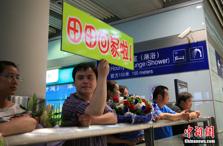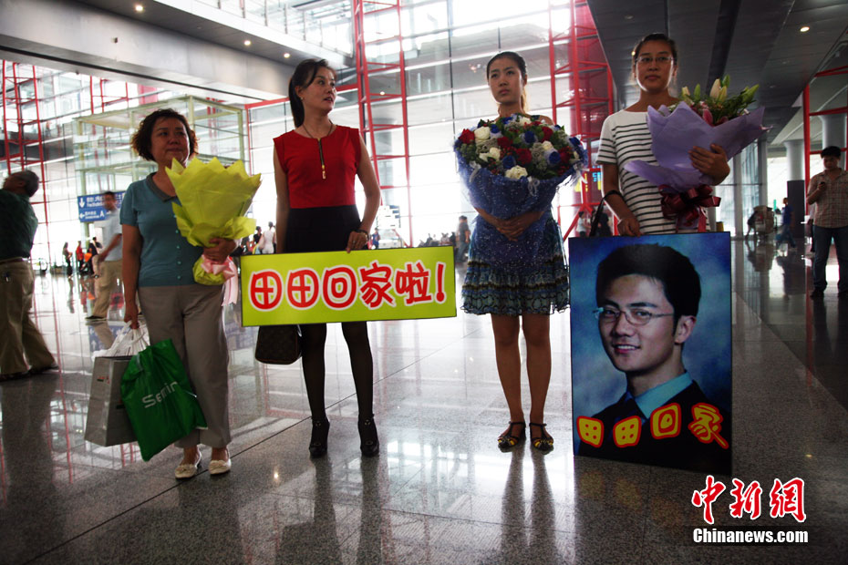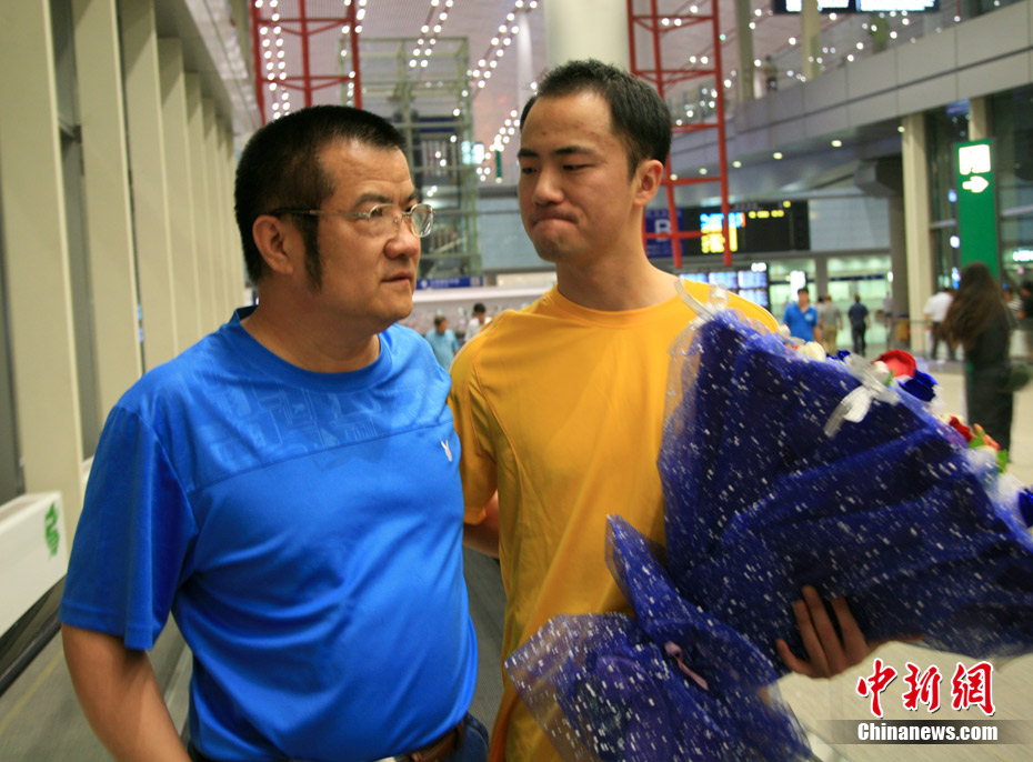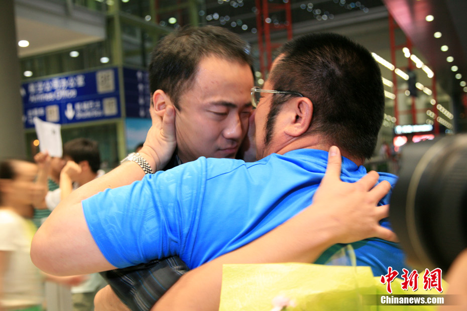 8月10日晚間,被控以“恐怖威脅”罪而被逮捕的中國(guó)留美博士生翟田田,自紐約肯尼迪國(guó)際機(jī)場(chǎng)抵達(dá)北京首都國(guó)際機(jī)場(chǎng)。在異國(guó)他鄉(xiāng)經(jīng)歷約4個(gè)月的牢獄之災(zāi)后,翟田田終于憑藉“自動(dòng)離境”權(quán)利離美歸國(guó)。今年4月份,在美國(guó)新澤西州攻讀博士學(xué)位的翟田田因與校方發(fā)生矛盾,以“恐怖威脅”罪名被逮捕,并遭校方退學(xué)并被美國(guó)移民局關(guān)入移民監(jiān)獄。圖為翟田田與8年未曾謀面的父親相擁而泣。中新網(wǎng)記者 張冬冬 攝