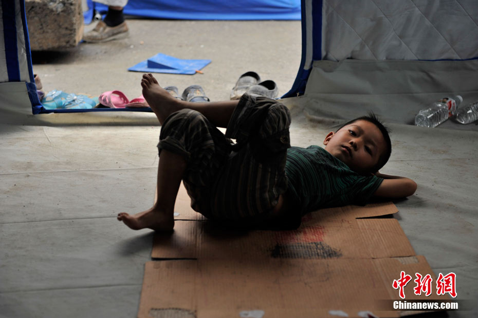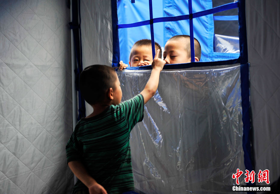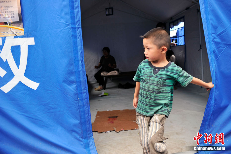 8月12日,甘肅舟曲災(zāi)區(qū)受災(zāi)群眾安置點(diǎn)內(nèi)的孩子們。甘肅舟曲特大山洪泥石流災(zāi)害發(fā)生后的第5天,隨著救災(zāi)物資持續(xù)運(yùn)進(jìn)舟曲災(zāi)區(qū),臨時(shí)安置點(diǎn)的生活條件也逐漸得到改善,各類(lèi)設(shè)施逐漸齊全,受災(zāi)群眾在這里重啟生活。中新網(wǎng)記者 金碩 攝