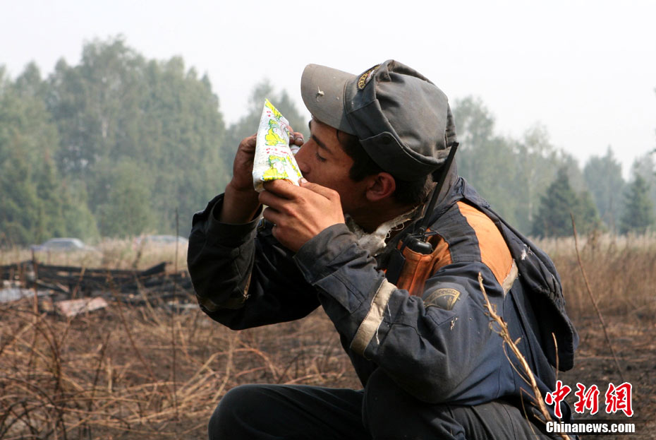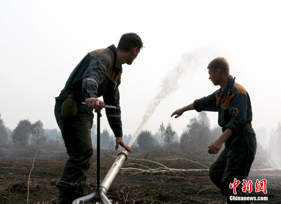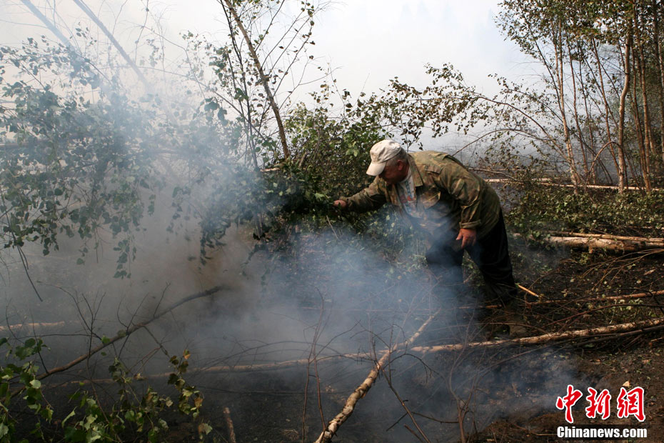 8月13日,在距莫斯科市140公里的莫斯科州沙圖拉區(qū)一村莊附近,刺鼻的煙霧繚繞中,村民用樹枝撲滅由泥炭燃燒產(chǎn)生的明火。目前該州大部分火災被完全撲滅,但仍有29處火點,面積達124公頃,其中12處為泥炭火災。莫斯科周邊泥炭燃燒產(chǎn)生的濃煙被認為是莫斯科市區(qū)煙霧的主要來源之一。中新社發(fā) 田冰 攝