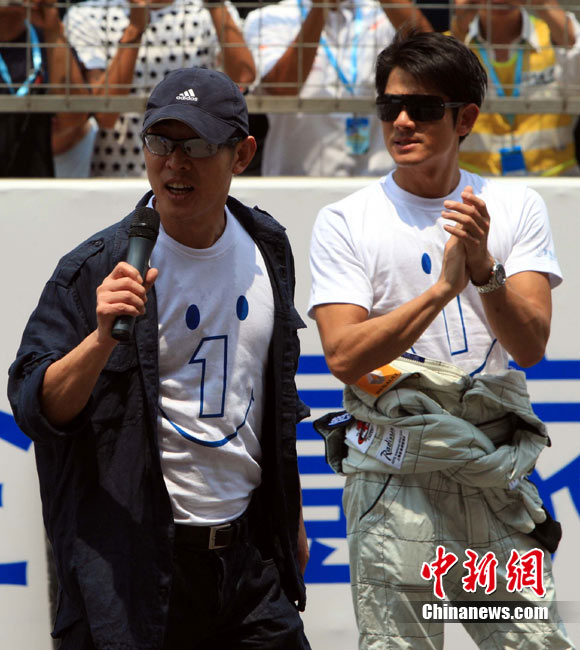 8月16日,由李連杰攜手郭富城等12位明星,在上海國際賽車場參加超級賽車慈善明星賽。中新社發(fā) 潘索菲 攝