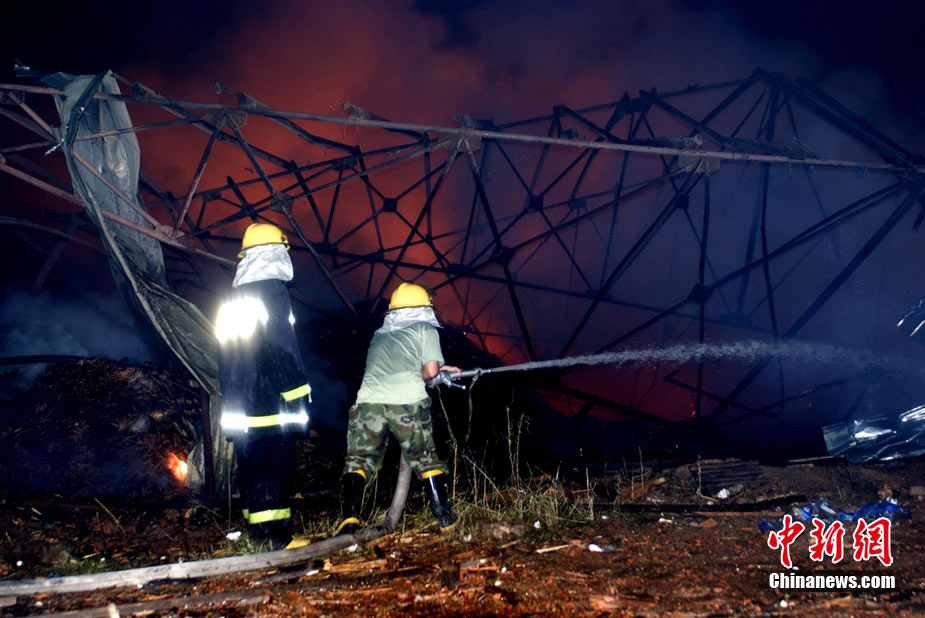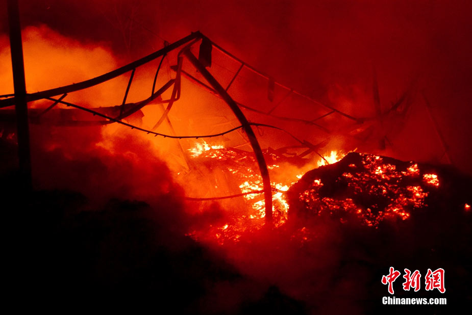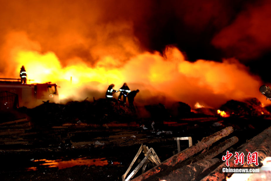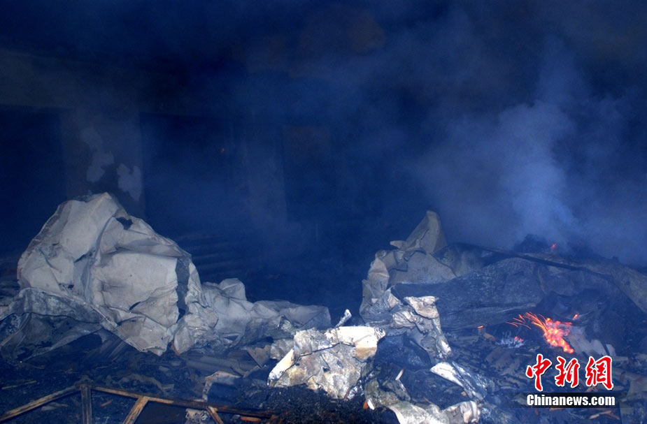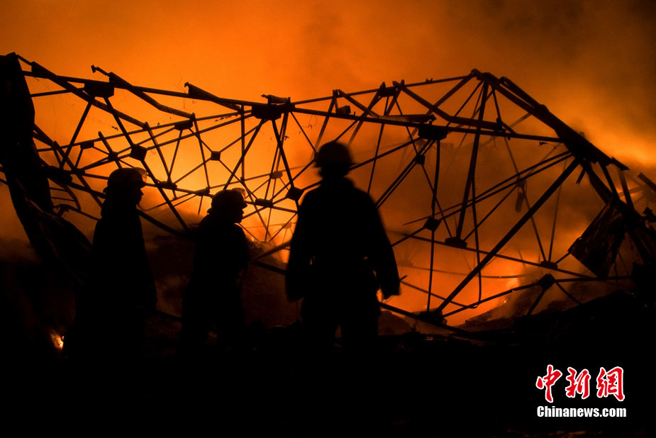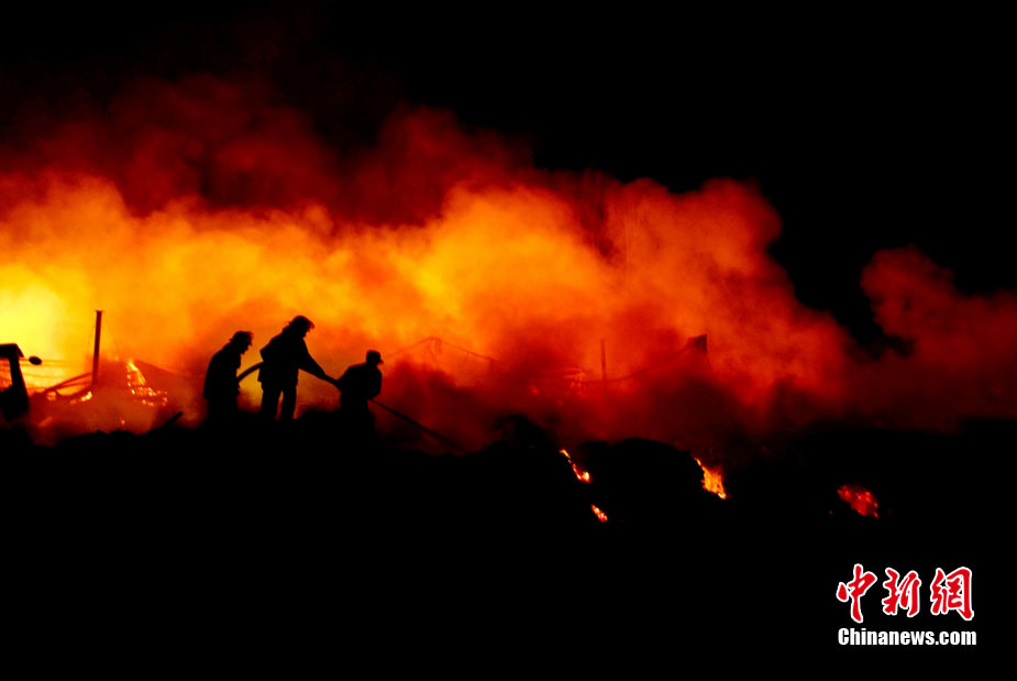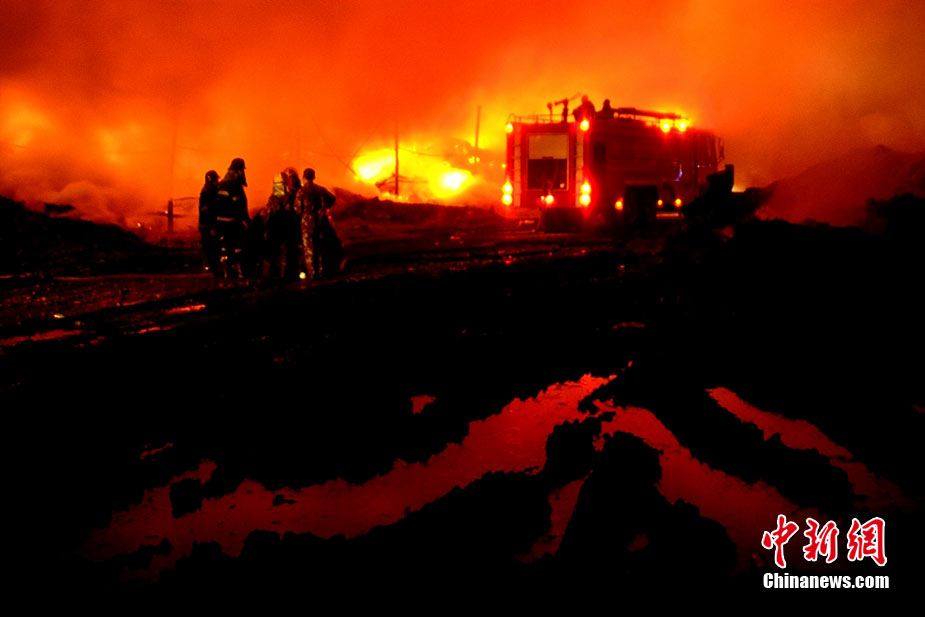 2010年8月16日9時40分左右,黑龍江省伊春市烏馬河區(qū)華利實業(yè)有限公司鞭炮廠發(fā)生持續(xù)爆炸。爆炸發(fā)生后,伊春市委、市政府緊急啟動爆炸事件、醫(yī)療救護應急處置預案,緊急調派公安、消防、醫(yī)療救護、武警部隊、駐軍部隊2000余人及時進行搶救,經過8個多小時的奮力鏖戰(zhàn),因爆炸引起的火災已全部撲滅。截至17日零時,發(fā)生在當地烏馬河區(qū)的鞭炮廠爆炸已造成19人死亡,5人失蹤,住院傷者153人。準確原因正在進一步調查之中。圖為16日夜23時30分,武警消防部隊官兵不辭辛苦仍戰(zhàn)斗在火場一線清理殘火。陳剛 攝