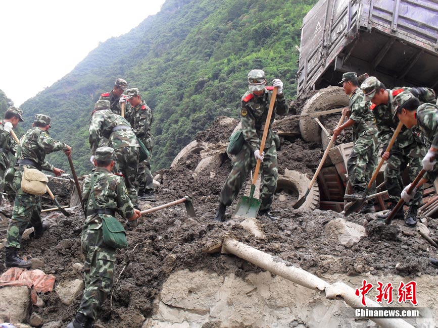 8月19日,中央氣象臺消息,“8.18”云南貢山縣普拉底鄉(xiāng)泥石流災(zāi)害地區(qū)會有中雨,降雨將給救援工作帶來難度。圖為武警云南總隊怒江支隊官兵在災(zāi)區(qū)按照救援計劃實施救援。 中新社發(fā) 陳慶祥 郝亞鑫 攝 圖片來源:CNSPHOTO