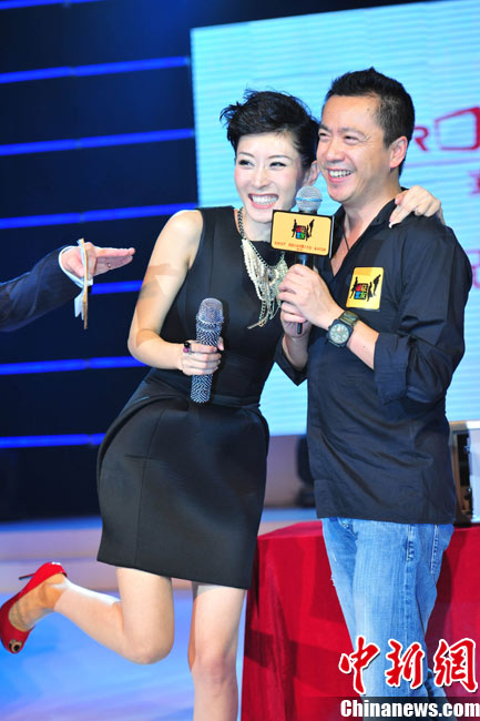 8月30日,著名主持人李霞在北京簽約華誼兄弟,宣布成立李霞工作室,聯(lián)手東方衛(wèi)視,推出大型真人秀節(jié)目《誠(chéng)征室友》。娛樂(lè)主播一姐李霞親挑大梁的《誠(chéng)征室友》是以年輕人合租生活為主題的全新節(jié)目,主題圍繞年輕人關(guān)注的“蝸居”、“合租”、“買車”等熱門話題展開。當(dāng)天,李霞身穿黑色禮服勁舞出場(chǎng),震撼宣布“復(fù)出”。心情大好的她“拳打”老板王中磊大開玩笑。前來(lái)捧場(chǎng)的張紀(jì)中更是向她支招,讓王中磊多給股份。圖為李霞“拳打”老板王中磊秀親熱。中新社記者 李學(xué)仕 攝