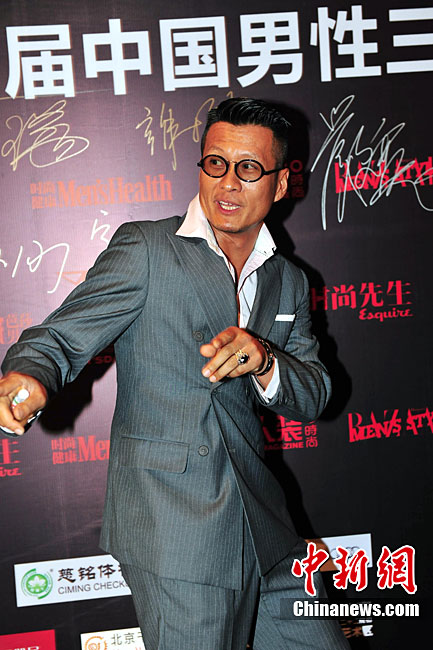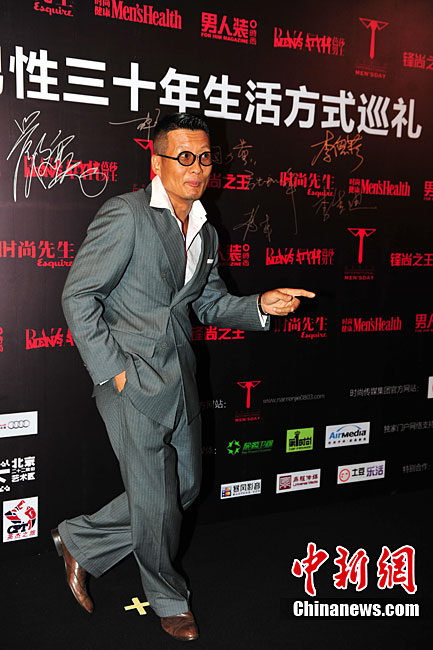 9月2日晚,作為2010“8.3國際男人節(jié)”的重要組成部分,也是高潮環(huán)節(jié)的“首屆中國男性三十年生活方式巡禮”,在北京舉行。數(shù)十位活躍在商業(yè)、傳媒、影視、音樂、文化、設(shè)計、體育及時尚等領(lǐng)域的精英人士出席了活動。圖為黃渤嘻哈裝扮亮相。中新社記者 李學(xué)仕 攝