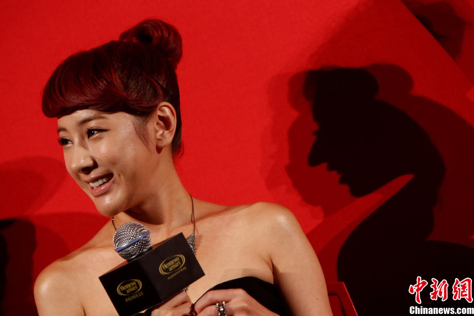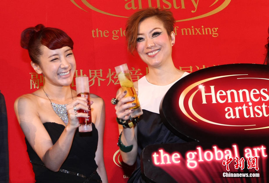 9月3日,軒尼詩炫音之樂又一次以超級陣容亮相北京:亞洲樂壇天后鄭秀文、亞洲音樂頑童庾澄慶、韓國百變歌姬徐仁英、 嘻哈時代的英國搖滾先鋒Hugo以及國內(nèi)搖滾新生力量糖果槍樂隊,齊聚北京,4日晚將在國家體育館震撼出演。圖為韓國百變歌姬徐仁英(左)和亞洲樂壇天后鄭秀文在發(fā)布會上。中新社記者 杜洋 攝