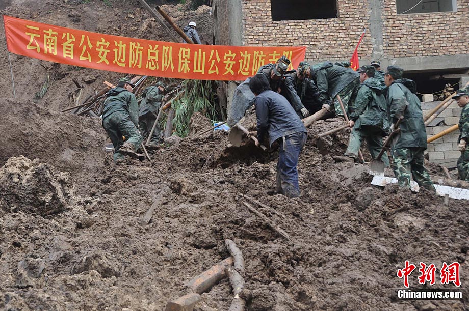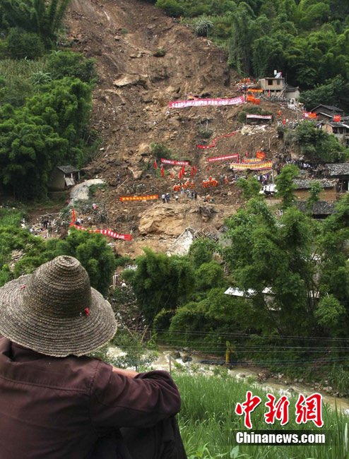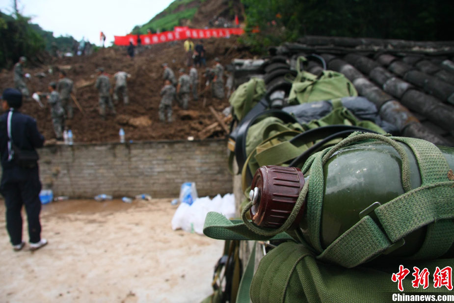 9月1日發(fā)生在云南保山隆陽區(qū)瓦馬村的特大山體滑坡災(zāi)害造成該村損毀嚴重,相關(guān)專家鑒定,該區(qū)存在重大安全隱患,不適宜再居住。相關(guān)專家組日前趕赴災(zāi)區(qū),為受災(zāi)群眾進行災(zāi)后重建選址工作。圖為地質(zhì)觀測點的武警戰(zhàn)士正在監(jiān)測救援現(xiàn)場地質(zhì)情況,以防止次生災(zāi)害的發(fā)生。中新社發(fā) 任東 攝