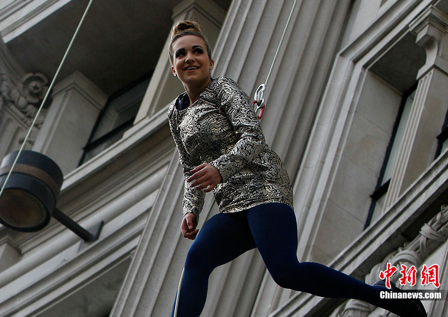 當(dāng)?shù)貢r(shí)間9月6日,一批模特在英國倫敦掛上鋼絲,在大樓外上演了一場(chǎng)精險(xiǎn)刺激的空中時(shí)裝秀。這場(chǎng)時(shí)裝秀是為了宣傳即將到來的英國時(shí)裝周而特別設(shè)計(jì)的。