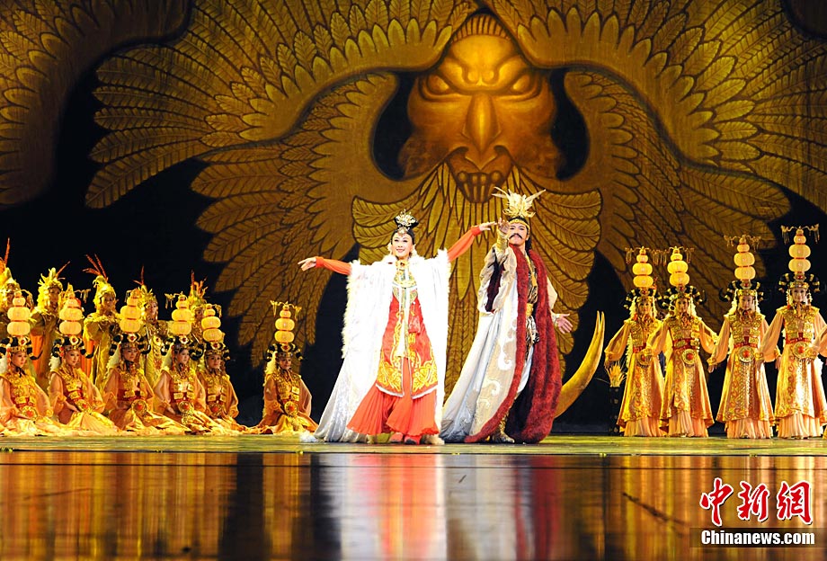 9月16日晚,2010華僑華人創(chuàng)業(yè)發(fā)展洽談會(huì)在武漢琴臺(tái)大劇院舉辦專場(chǎng)文藝演出,由湖北省歌劇舞劇院演出大型原創(chuàng)民族舞劇《王昭君》,其演員們的精湛演出博得與會(huì)代表們的熱烈掌聲。中新社發(fā) 張勤 攝