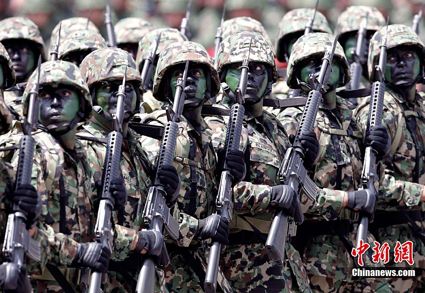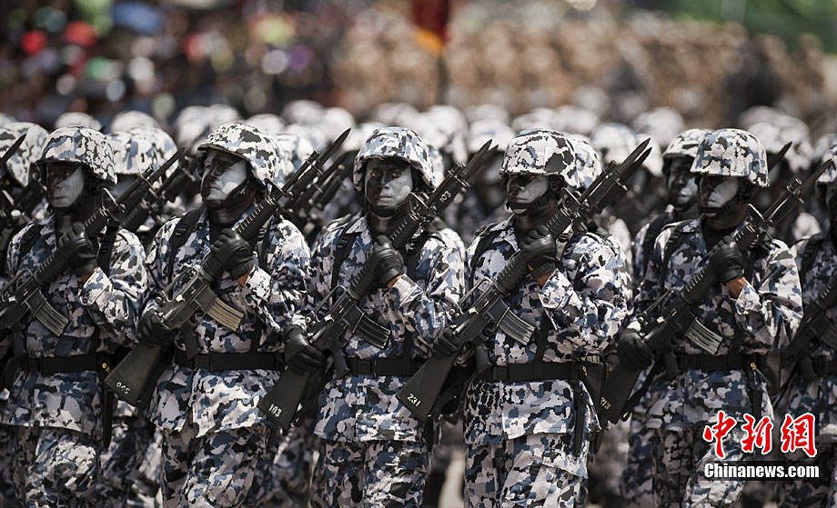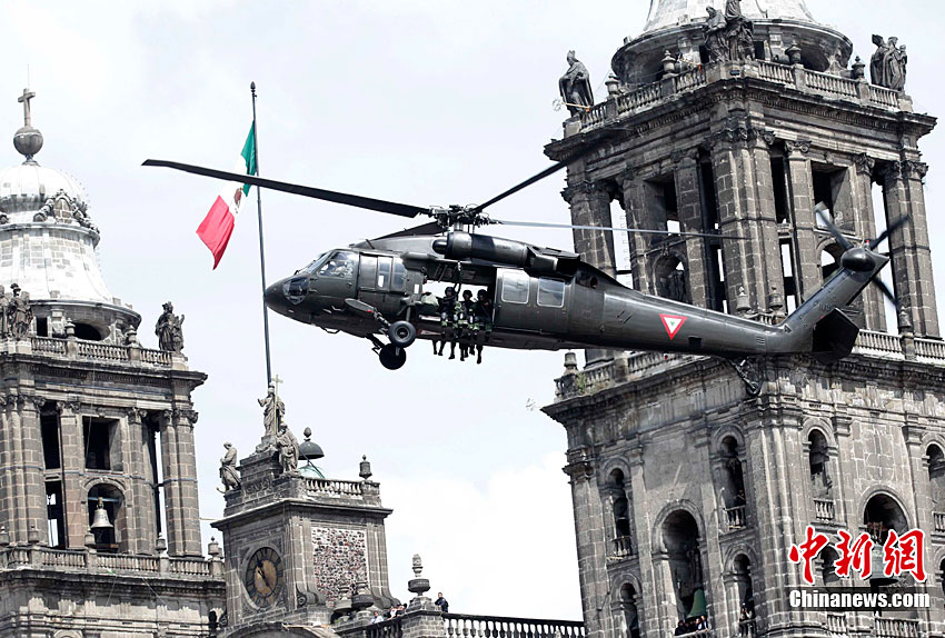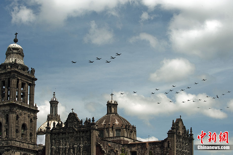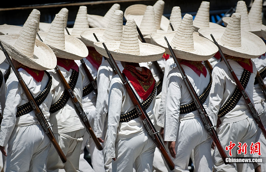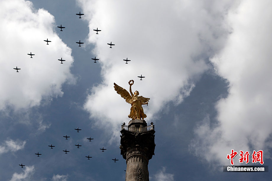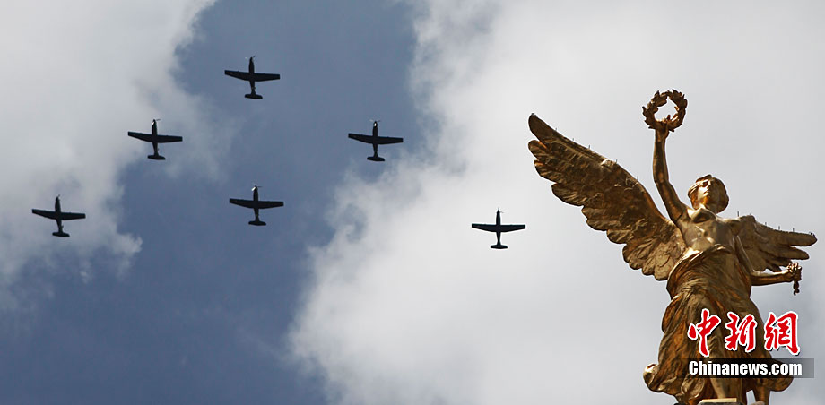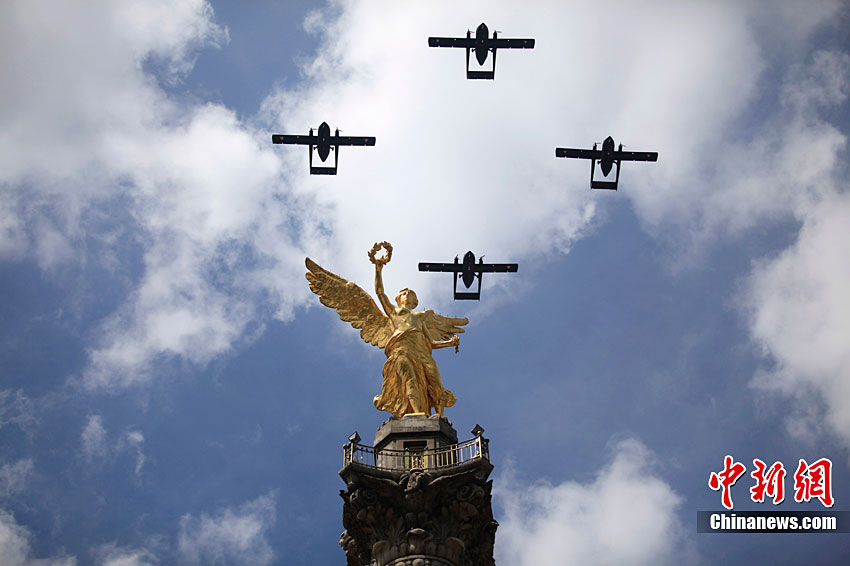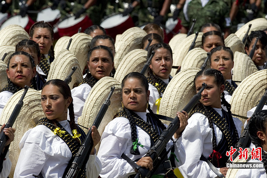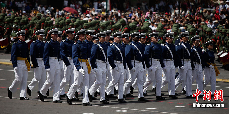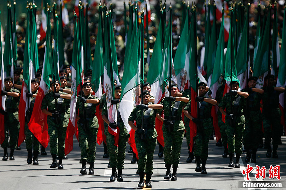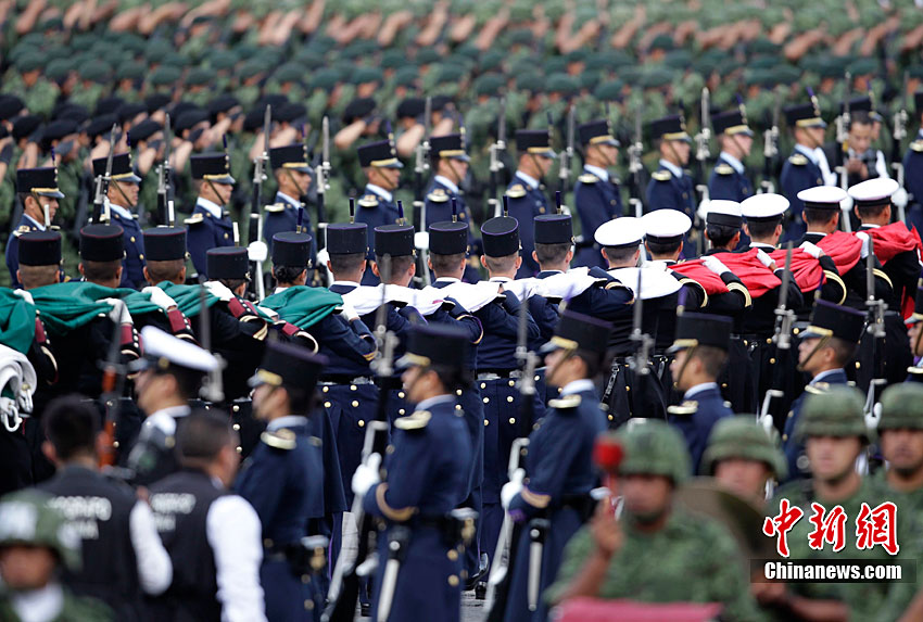 9月16日,在墨西哥首都墨西哥城,中國人民解放軍儀仗方隊參加墨西哥獨立200周年慶典閱兵。參加此次閱兵的中國儀仗隊由36人組成,其中34人編成方陣,最前方是1名旗手、5名護旗手,后隨1名陸軍指揮官,其身后列3隊,陸海空各1列、每列9人。這是解放軍儀仗部隊首次走出國門遠(yuǎn)赴海外參加活動。