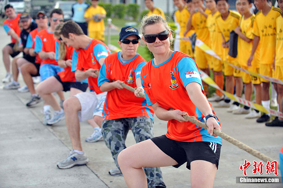 9月26日,應(yīng)中國(guó)人民解放軍海軍邀請(qǐng),澳大利亞海軍艦隊(duì)司令吉爾摩少將率海軍“瓦拉蒙加”號(hào)護(hù)衛(wèi)艦抵達(dá)湛江某軍港進(jìn)行友好訪問(wèn),南海艦隊(duì)舉行了隆重的歡迎儀式。中新社記者 陳文 攝