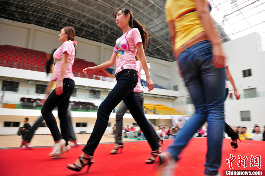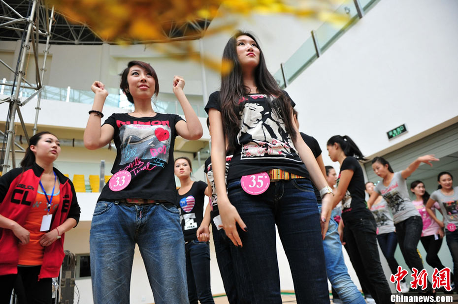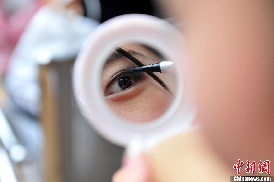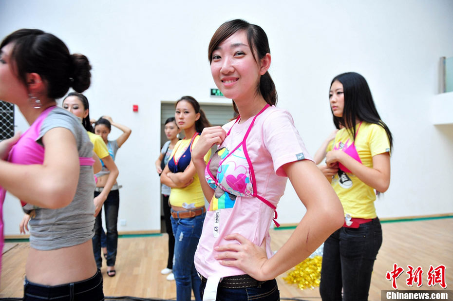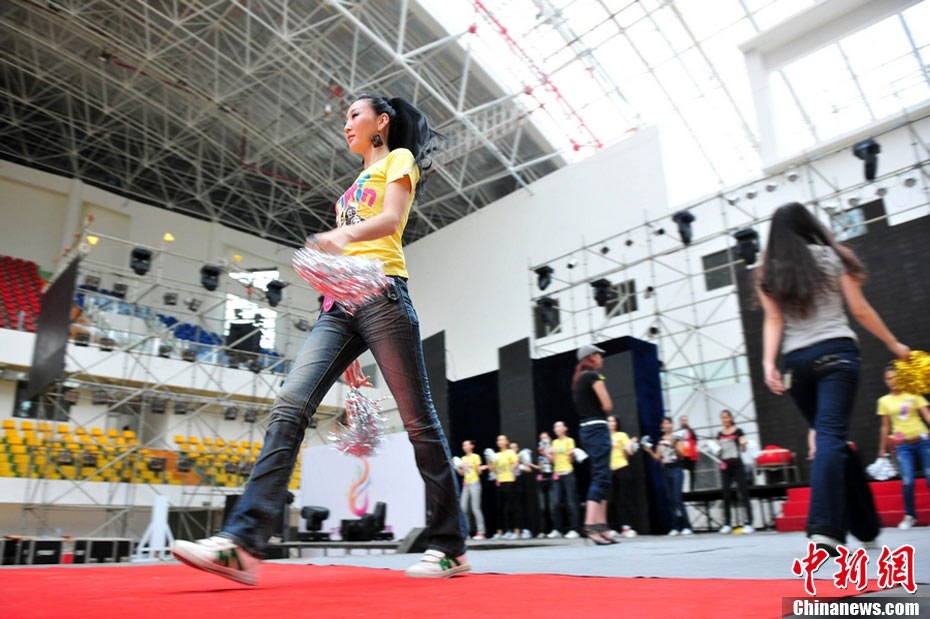 9月25日,40名佳麗選手云集四川省劍閣縣體育館,為即將到來的2010中華旅游小姐大賽中國區(qū)總決賽晚會(huì)進(jìn)行彩排。為了一個(gè)小時(shí)的時(shí)尚秀,選手們需要參加兩天共10幾個(gè)小時(shí)的高強(qiáng)度彩排,大部分的時(shí)間她們?cè)凇澳V浮钡闹笇?dǎo)下站立、走臺(tái)、或者是緊張的換衣。然而,猶如T臺(tái)上的絢麗一樣,她們的后臺(tái)同樣精彩。中新社記者 李學(xué)仕 攝