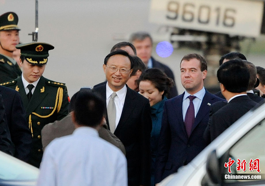 9月26日,俄羅斯總統(tǒng)梅德韋杰夫乘專機(jī)抵達(dá)北京。北京是他此次訪華行程的第二站。中新社記者 廖攀 攝