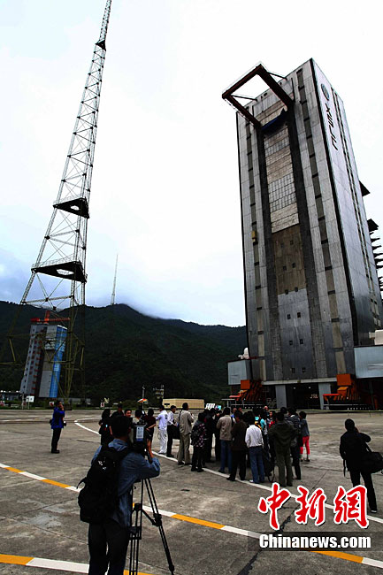 中國第二顆繞月探測(cè)衛(wèi)星——“嫦娥二號(hào)”目前和運(yùn)載火箭已星箭合體,預(yù)計(jì)近日發(fā)射奔月。9月28日各路記者云集西昌衛(wèi)星發(fā)射中心,熟悉采訪現(xiàn)場(chǎng),以及時(shí)報(bào)道這一盛事。中新社記者 宋吉河 攝