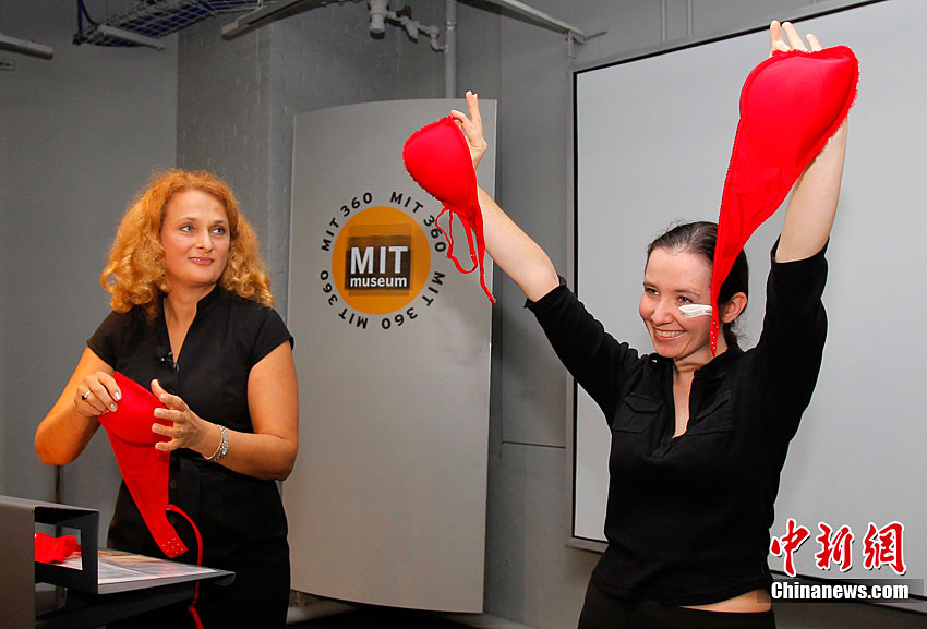 當(dāng)?shù)貢r(shí)間9月28日,科學(xué)家博德納在美國(guó)麻省理工學(xué)院博物館公開(kāi)展演了她的發(fā)明——“應(yīng)急胸罩”。該款胸罩可以在瞬間變成防毒面具,保護(hù)使用者免遭致命生化制劑的攻擊。憑借這款“防毒胸罩”,博德納曾獲得2009年“搞笑諾貝爾獎(jiǎng)”的公共健康獎(jiǎng)。
