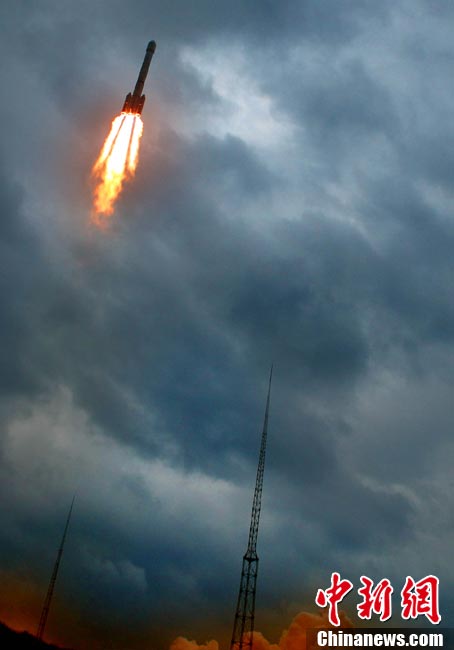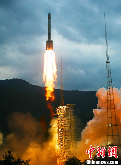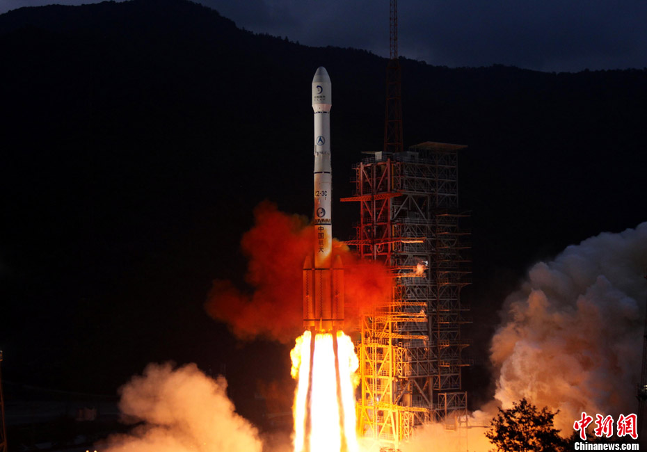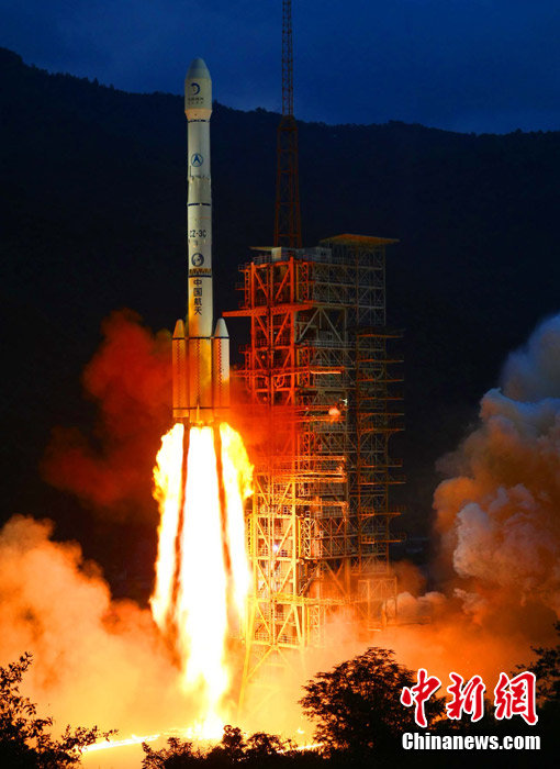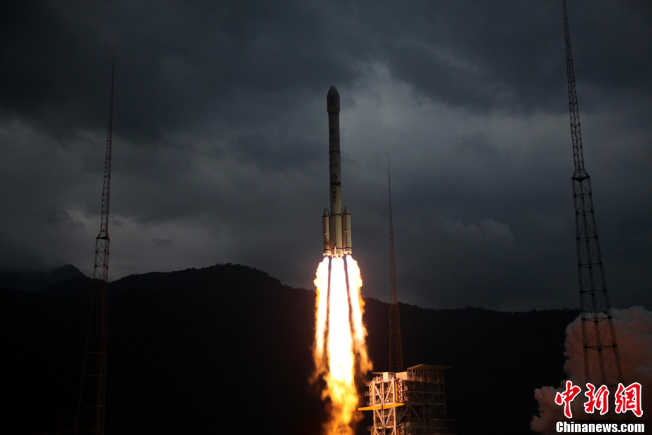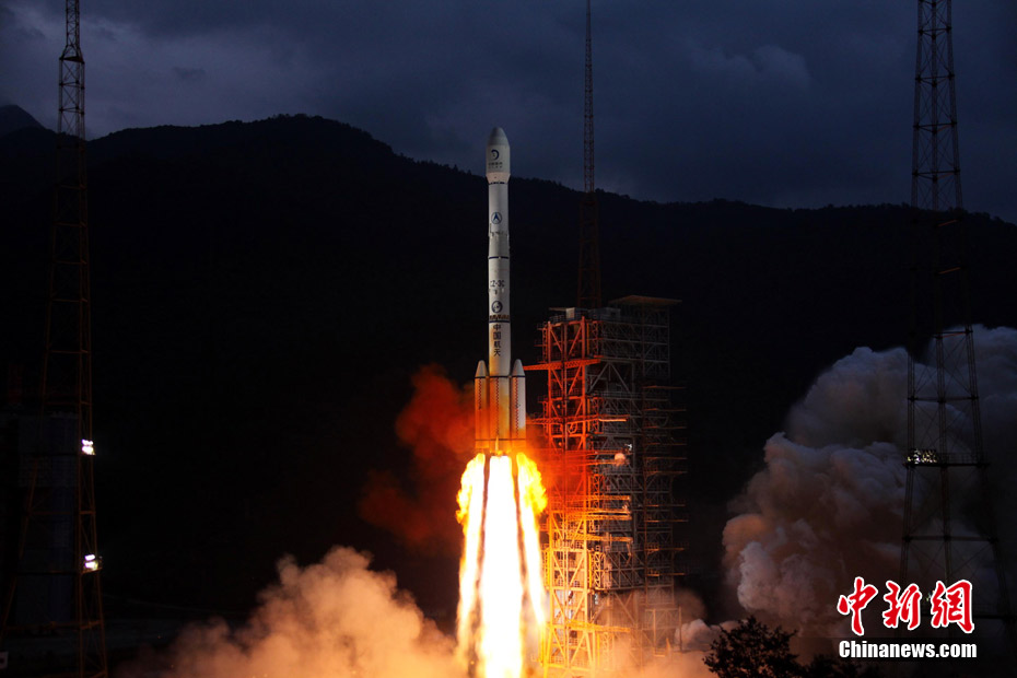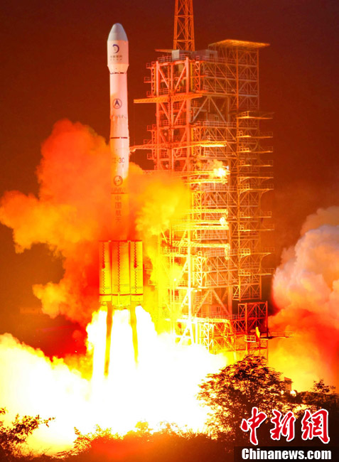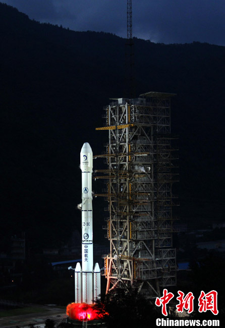 10月1日晚,中國第二顆繞月探測衛(wèi)星“嫦娥二號”在西昌衛(wèi)星發(fā)射中心發(fā)射成功。按照預(yù)定計劃,“嫦娥二號”將被送入近地點高度200公里、遠地點高度約38萬公里的直接奔月軌道,然后奔月飛行約112小時。當衛(wèi)星到達月球附近的特定位置時,實施近月制動及軌道調(diào)整,進入距月面100公里工作軌道。之后,衛(wèi)星擇機變軌,進入100公里×15公里繞月橢圓軌道,驗證軌道機動和飛行技術(shù),拍攝后續(xù)任務(wù)虹灣預(yù)選著陸區(qū)圖像,然后返回100公里圓軌道,并開展相關(guān)技術(shù)試驗和科學探測。中新社記者 宋吉河 攝