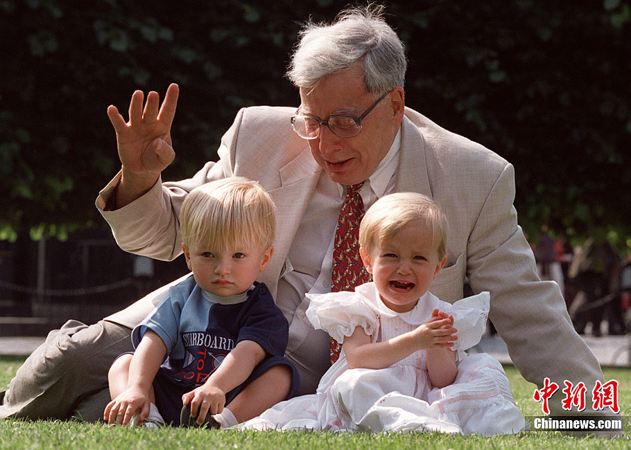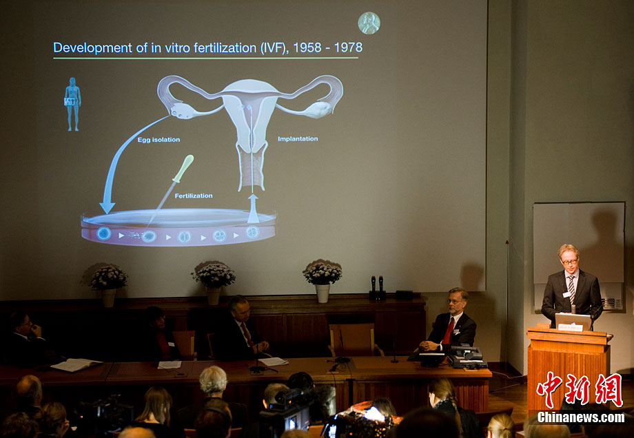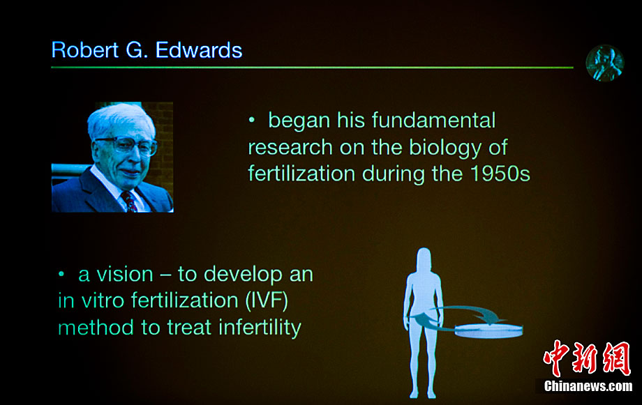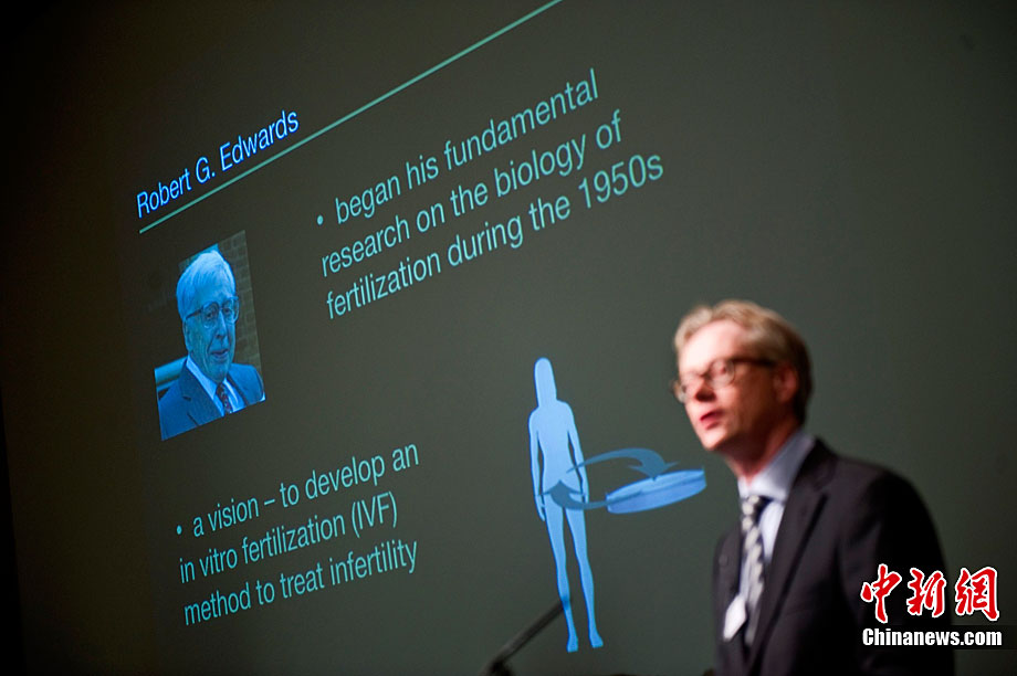 被譽為“試管嬰兒之父”的英國科學家羅伯特·愛德華茲10月4日獲得諾貝爾生理學或醫(yī)學獎,他因身體欠佳未對獲獎消息發(fā)表感言。圖為2008年7月12日,愛德華茲(左)與世界第一個試管嬰兒路易斯(右)和她的兒子、母親合影。