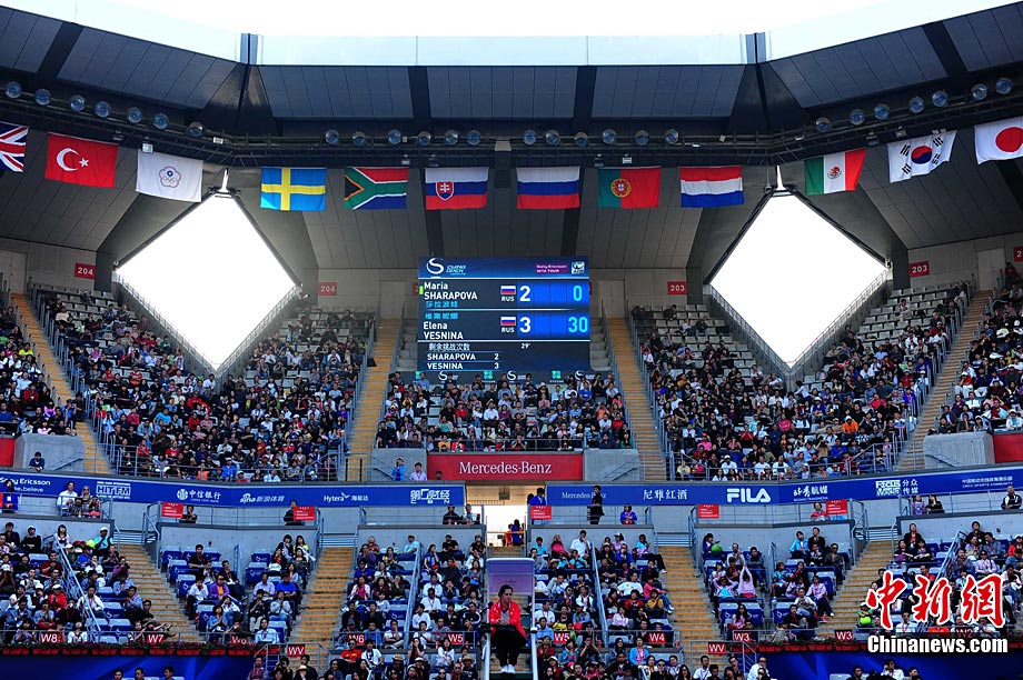 10月5日,2010年中國(guó)網(wǎng)球公開(kāi)賽進(jìn)入第五個(gè)比賽日,當(dāng)天由于有穆雷、德約科維奇、莎拉波娃、李娜、達(dá)維登科等明星球員登場(chǎng),觀眾齊聚一號(hào)球場(chǎng)觀看比賽。中新社記者 侯宇 攝