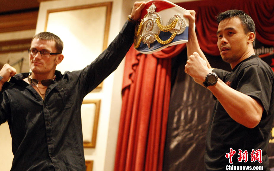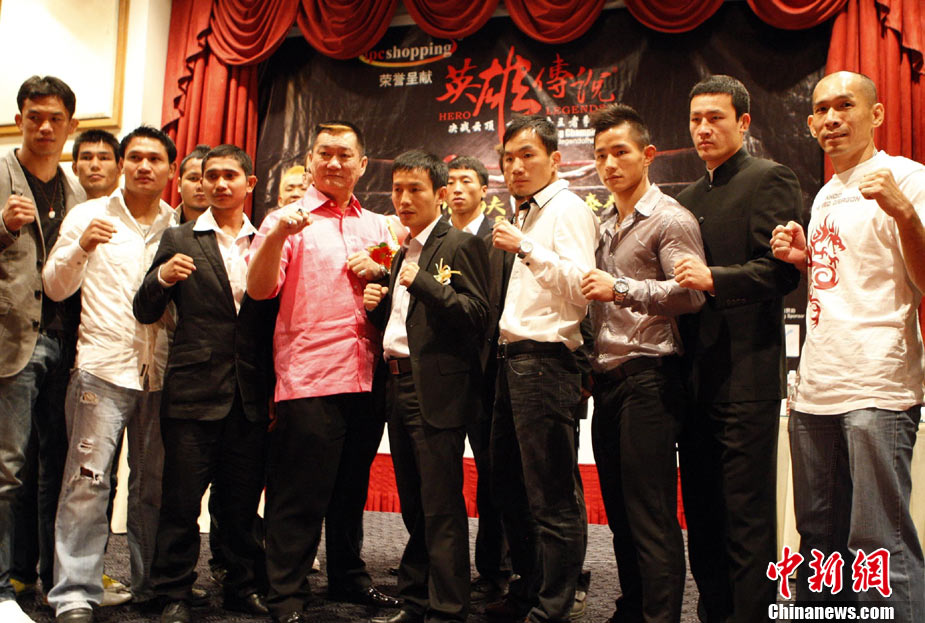 10月7日,“英雄傳說-決戰(zhàn)云頂”世界搏擊王者爭霸賽在馬來西亞吉隆坡舉行賽前發(fā)布會,是次賽事是目前在馬來西亞規(guī)模最大,規(guī)格最高的職業(yè)搏擊比賽,比賽除了五位泰拳選手和五位中國選手參加之外,還有來自日本、美國以及馬來西亞共16位拳手參賽。賽事由來自美國、日本、菲律賓以及中國的國際組織WBC、WCK、K-1的國際職業(yè)裁判擔任。10月9日該賽將通過衛(wèi)星全球直播,中國亦將有多家電視臺實況錄/轉播。圖為各國拳手亮相“英雄傳說-決戰(zhàn)云頂”世界搏擊王者爭霸賽賽前發(fā)布會。 中新社記者 錢興強 攝
