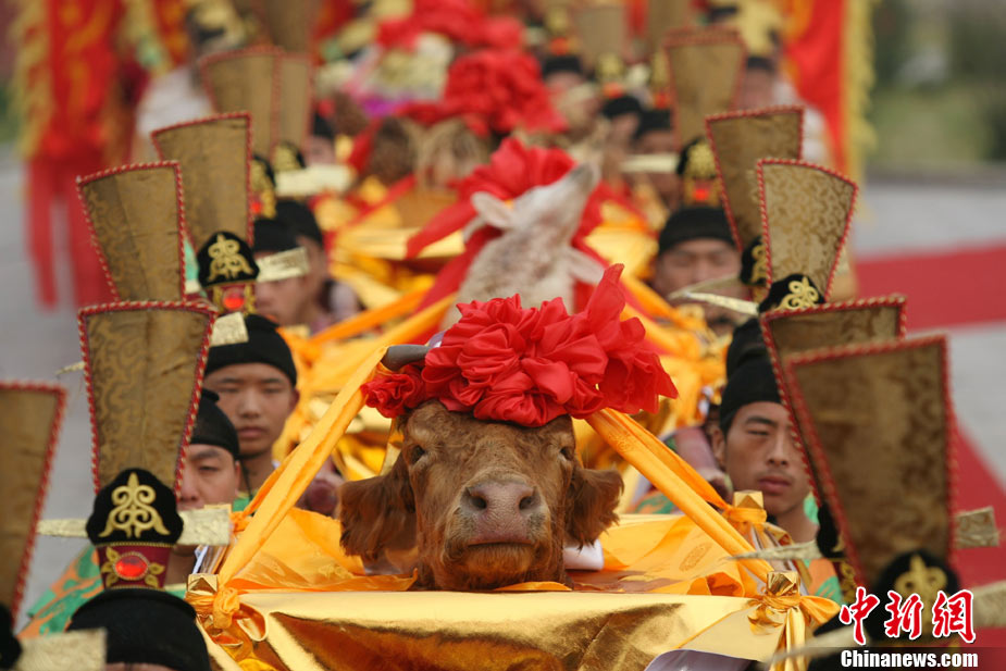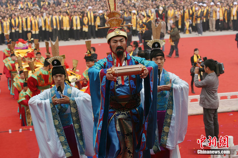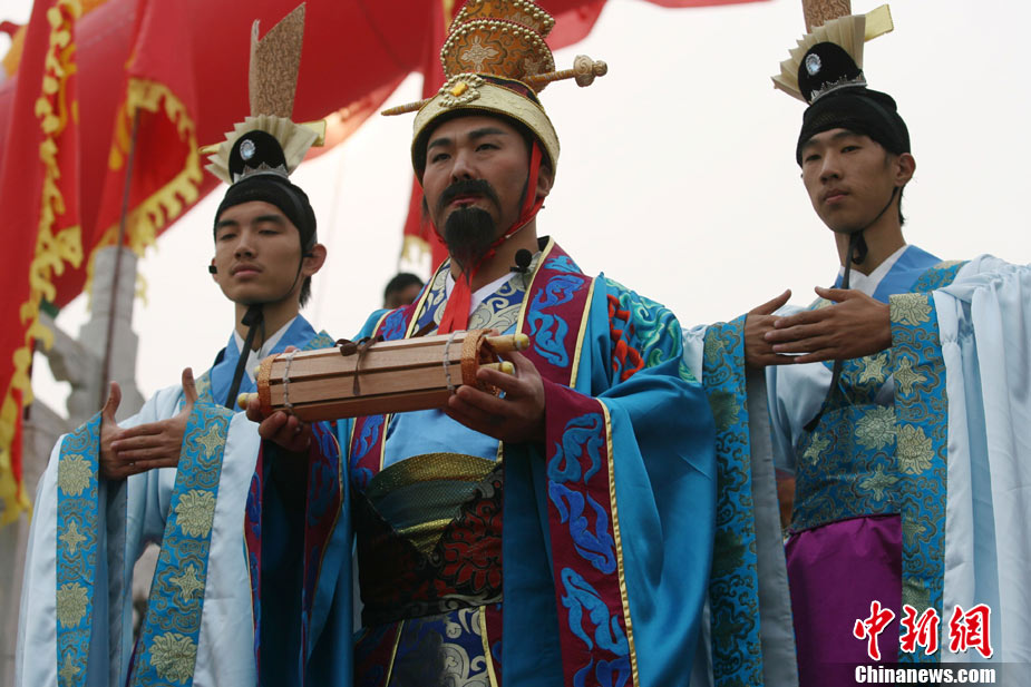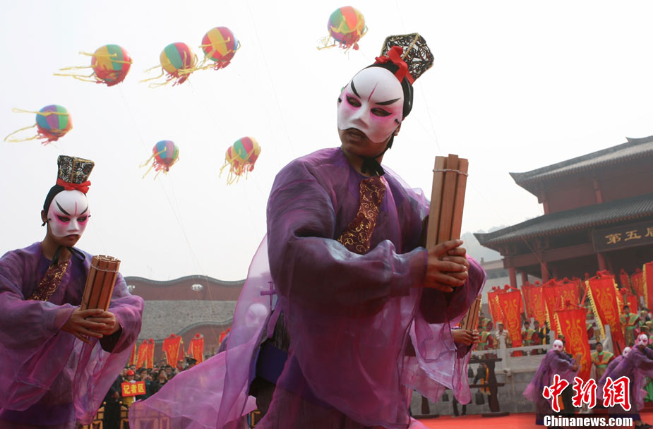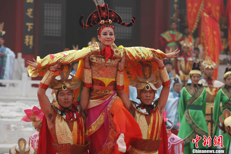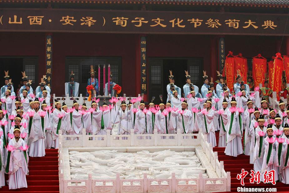 10月10日,演員在祭荀大典上表演戰(zhàn)國風(fēng)格的舞蹈。當(dāng)日,第五屆中國荀子文化節(jié)開幕式暨祭荀大典在荀子故里山西省安澤縣舉行。包括10國駐華大使在內(nèi)的數(shù)千名海內(nèi)外人士參加了此次大典。中新社發(fā) 蘇丹 攝