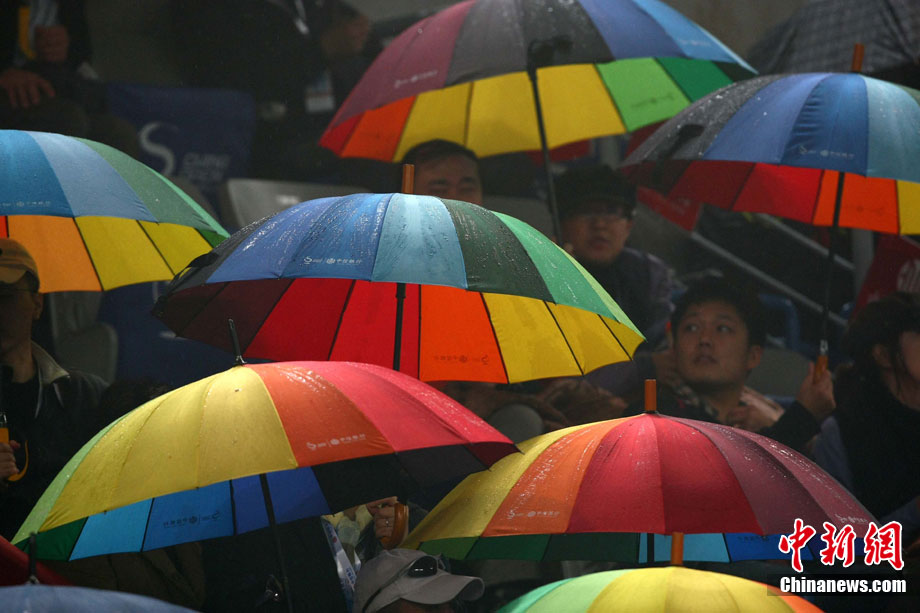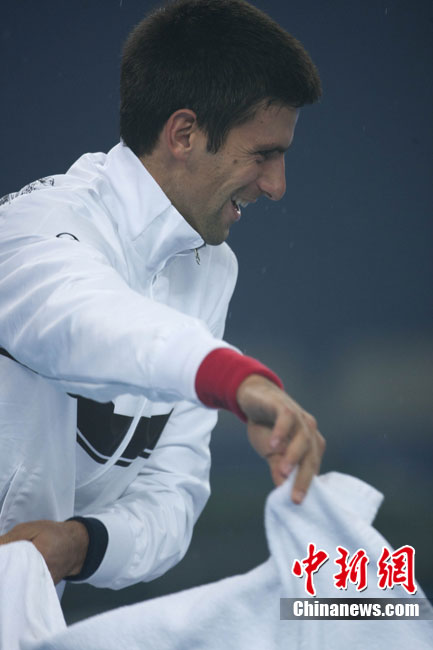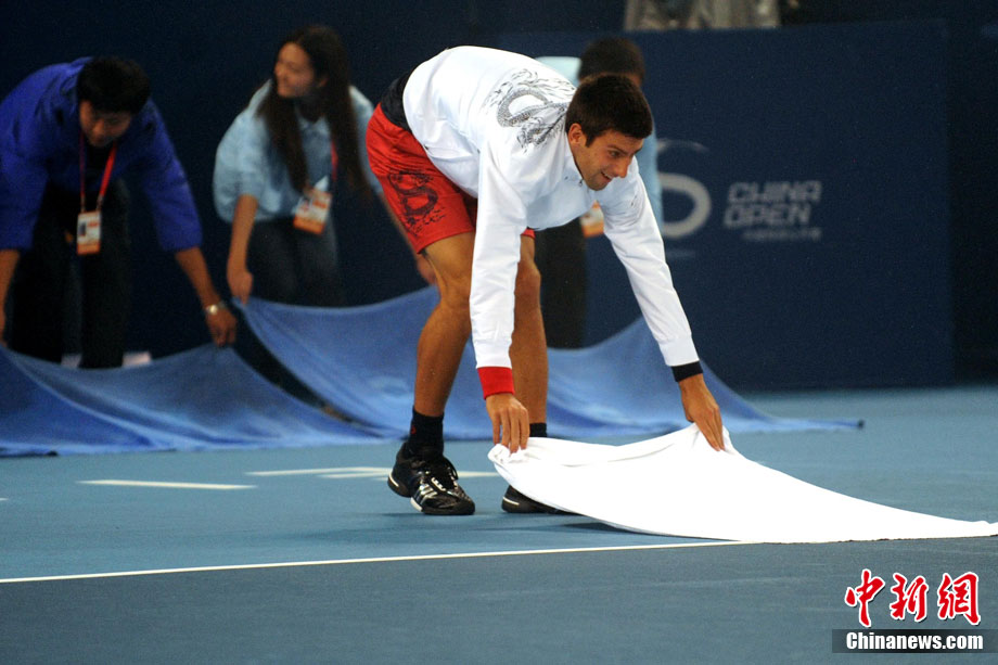 10月10日,總獎金額為210萬美元的ATP'500中網(wǎng)公開賽進入最后一天的爭奪,衛(wèi)冕冠軍德約科維奇與西班牙名將費雷爾之間的男單決賽因雨中斷,比賽暫停時小德以3-1的比分暫時領先。中新社記者 富田 攝