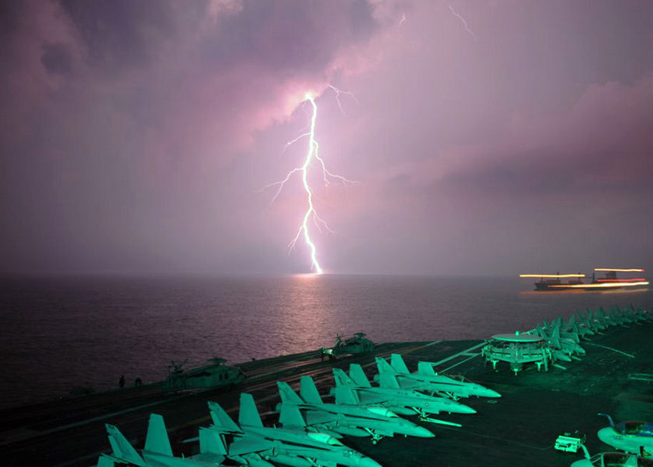 美航母通過馬六甲時遭遇壯觀雷暴