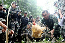 10月11日,中泰陸軍特種部隊(duì)反恐聯(lián)合訓(xùn)練交流野外生存技巧!巴粨-2010”中泰陸軍特種部隊(duì)反恐聯(lián)合訓(xùn)練于10月6日至20日在廣西壯族自治區(qū)桂林進(jìn)行。圖為展示用竹子制作的烤架。中新社記者 杜洋 攝