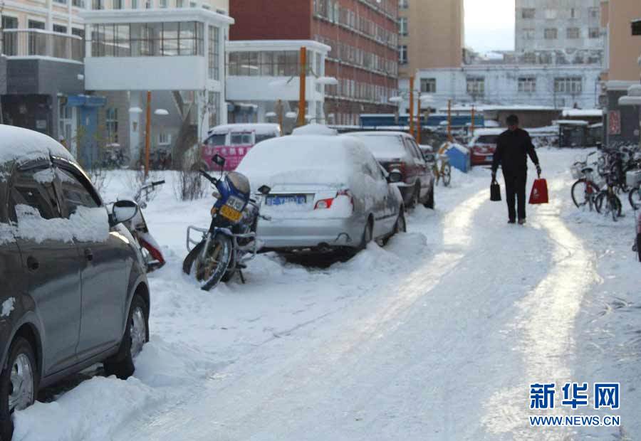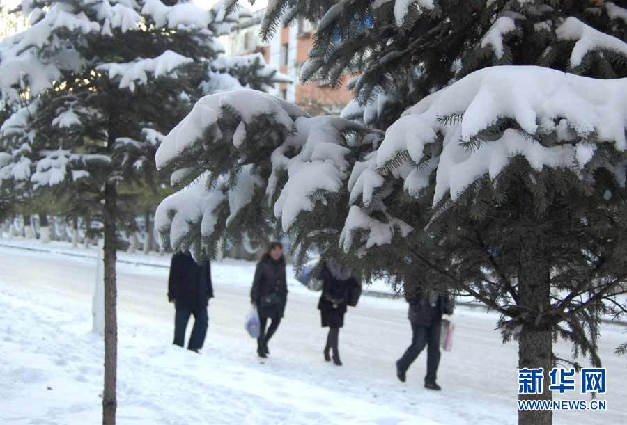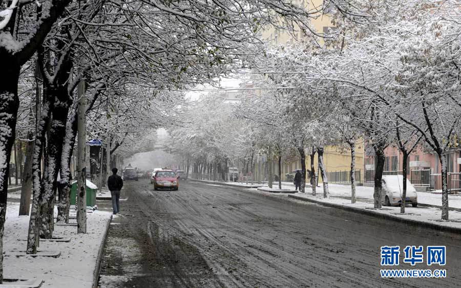 中央氣象臺(tái)近日發(fā)布消息,受3股冷空氣影響,新疆、西藏、青海、甘肅、黑龍江和內(nèi)蒙古等9省區(qū)入冬在即。圖為10月16日,黑龍江省七臺(tái)河市降雪,市民打著傘冒雪出行。秦存廣 攝 圖片來(lái)源:新華網(wǎng)