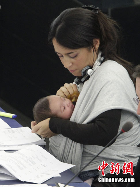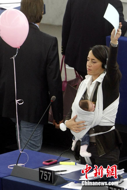 歐洲議會(huì)女議員懷抱孩子出席會(huì)議