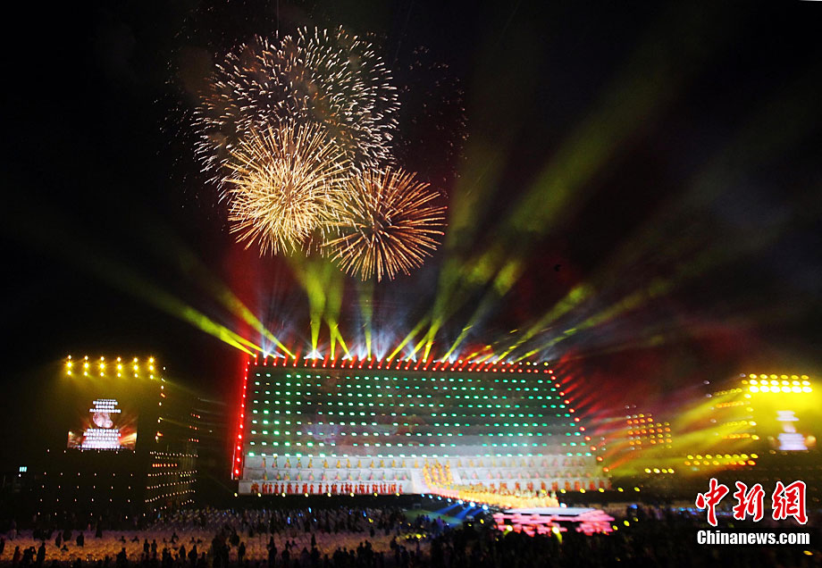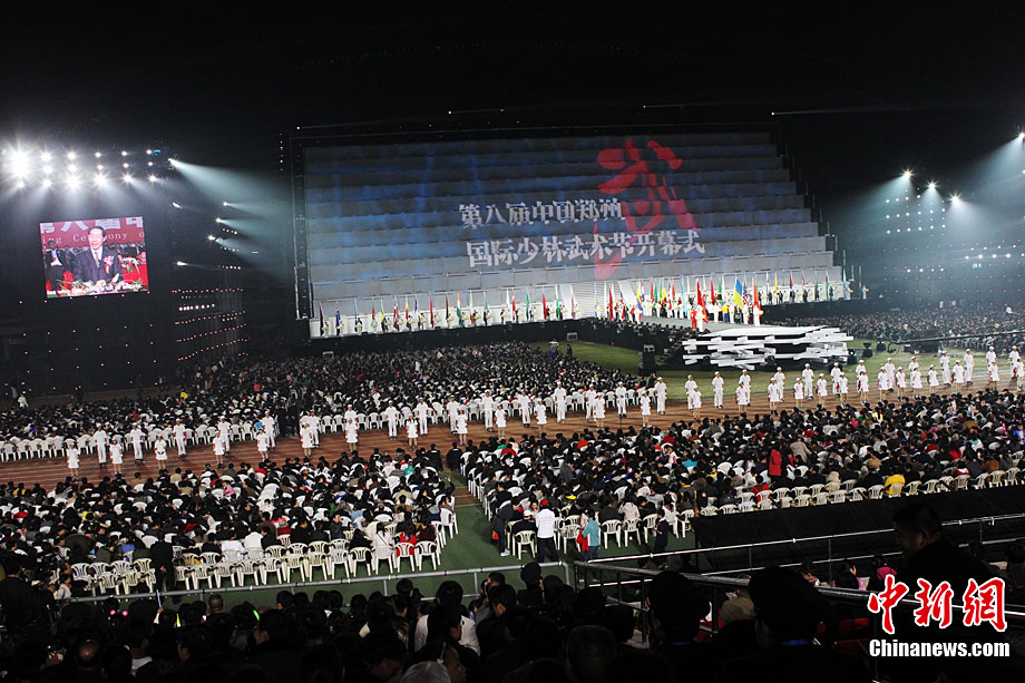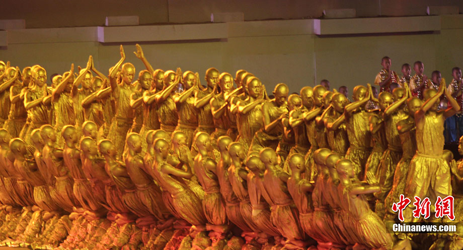 10月22日晚,“金身和尚”在國際少林武術(shù)節(jié)開幕式上表演。當(dāng)日,第八屆中國鄭州國際少林武術(shù)節(jié)在鄭州開幕。來自美國、法國、日本、及港澳臺(tái)等近60個(gè)國家和地區(qū)的1200名選手將在武術(shù)節(jié)期間同臺(tái)競技。中新社記者 王中舉 攝