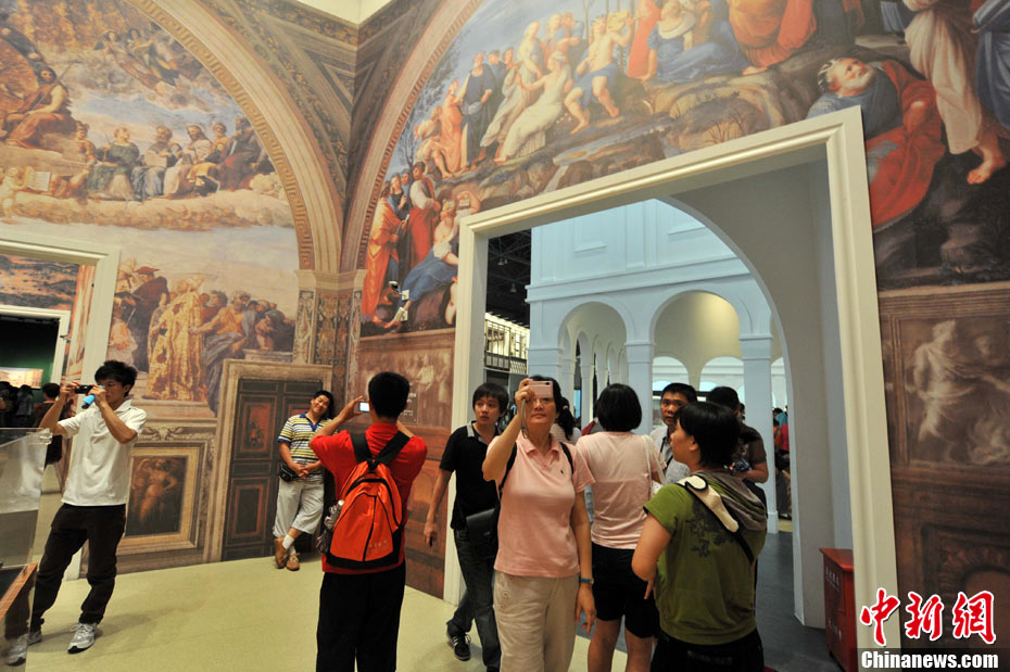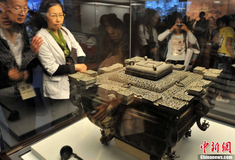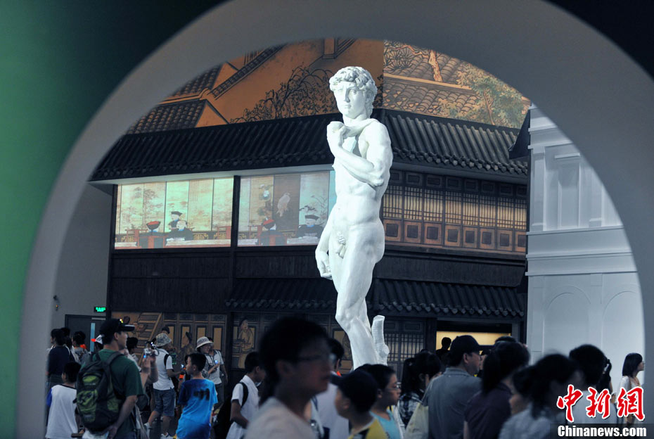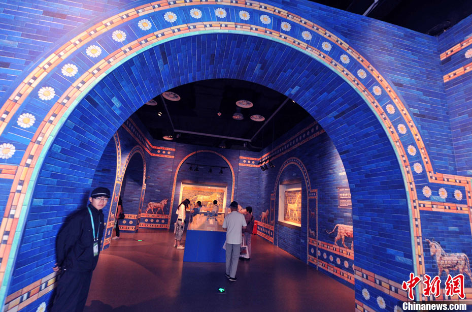 上海世博會的城市足跡館被譽(yù)為“世博園最值錢”的場館。古巴比倫王國的神門、特洛伊古戰(zhàn)場、莫高窟神秘壁畫、故宮及外國皇家珍寶、柏拉圖、達(dá)芬奇、卓別林和大衛(wèi)雕塑等等,這里薈萃著向世界各著名博物館借來的大量珍貴文物和鎮(zhèn)館之寶300多件,濃縮展示上下五千年人類城市發(fā)展史的時空畫卷,堪稱世博會史上的奇跡。專家感嘆,“僅僅把文物看一遍,就值世博會的門票。”中新社記者 賈國榮 攝