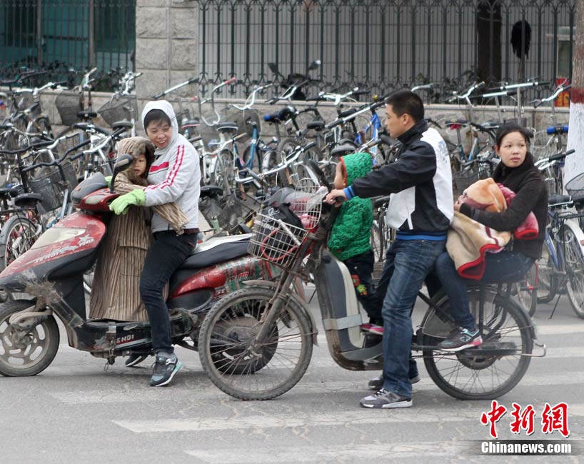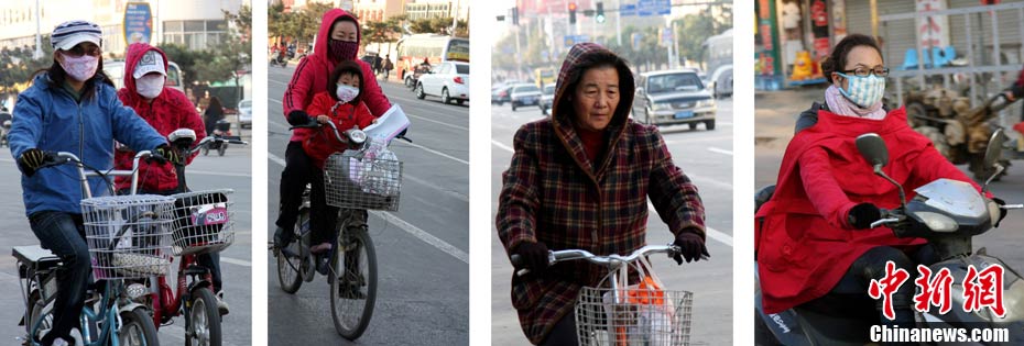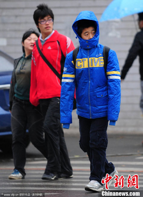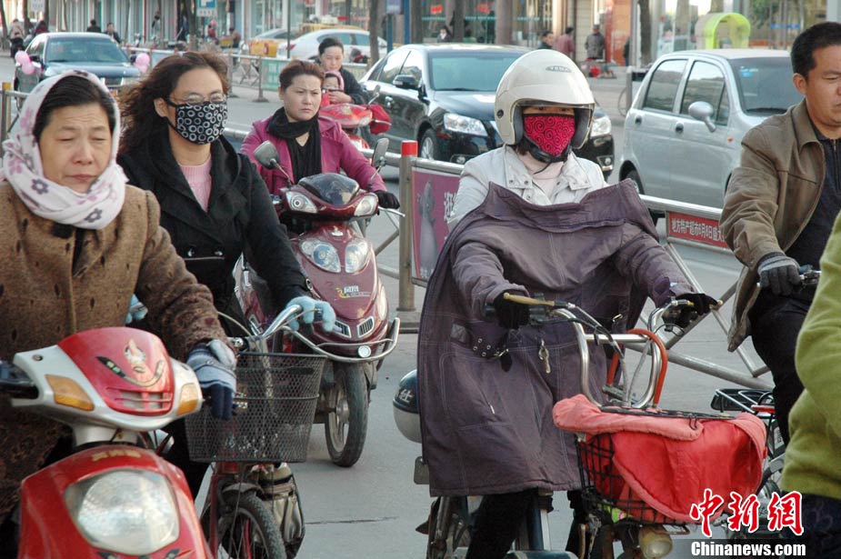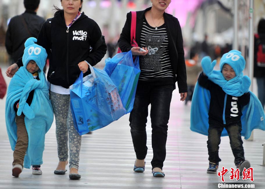 10月26日,河南鄭州,由于遭遇近5年來同期最強寒潮天氣襲擊,鄭州氣溫驟降,民眾出行都換上了厚厚的棉衣。據(jù)中央氣象臺發(fā)布:強冷空氣將繼續(xù)東移南下,中國南方部分地區(qū)氣溫將下降6~8℃,部分地區(qū)降溫幅度可達10℃。中國東部和南部海區(qū)在冷空氣的影響下,還將刮起9~10級風(fēng)。中新社記者 王中舉 攝