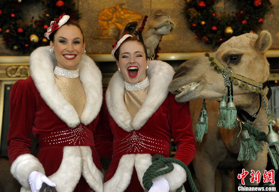 10月26日,美國(guó)“火箭女郎”舞蹈團(tuán)攜駱駝、綿羊等動(dòng)物一起出現(xiàn)在紐約無(wú)線電城前,為即將到來(lái)的圣誕大匯演造勢(shì)。今年的無(wú)線電城圣誕大匯演將于11月5日至12月30日舉行。