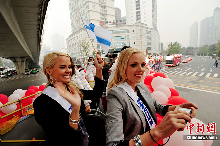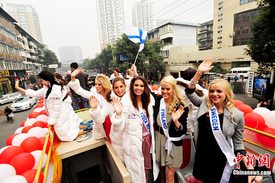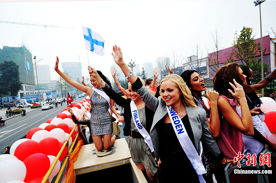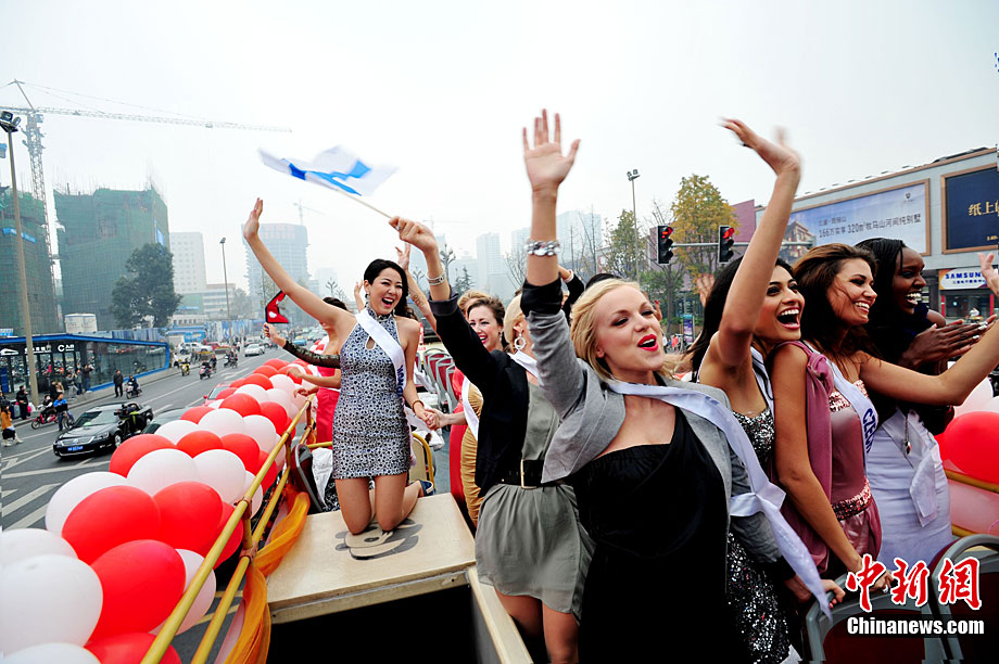 國際小姐總決賽佳麗在成都花車巡游