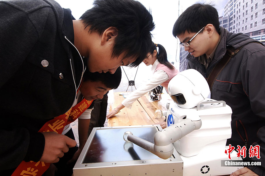 11月2日,福州科普愛好者與來自臺(tái)灣的機(jī)器人下棋。當(dāng)日,海峽兩岸科普嘉年華活動(dòng)在福州舉行,30多位臺(tái)灣科普專家攜15項(xiàng)臺(tái)灣科技成果到場,與福州民眾一起互動(dòng)。中新社記者 王東明 攝
