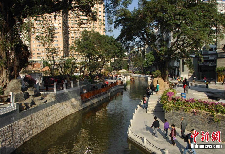 經(jīng)過大半年的揭蓋復(fù)涌,整飾一新的廣州荔枝灣涌,如今重現(xiàn)嶺南水鄉(xiāng)美景的風(fēng)貌。11月4日,“看亞運,游西關(guān)”荔灣精典一日游活動在荔枝灣舉行了啟動儀式,迎來了數(shù)千名游客和市民。中新社記者 梁永強 攝