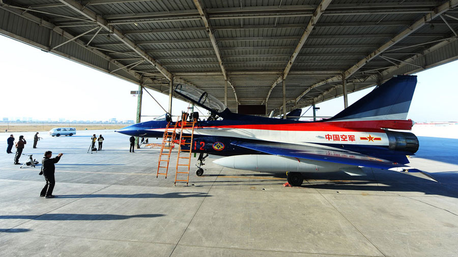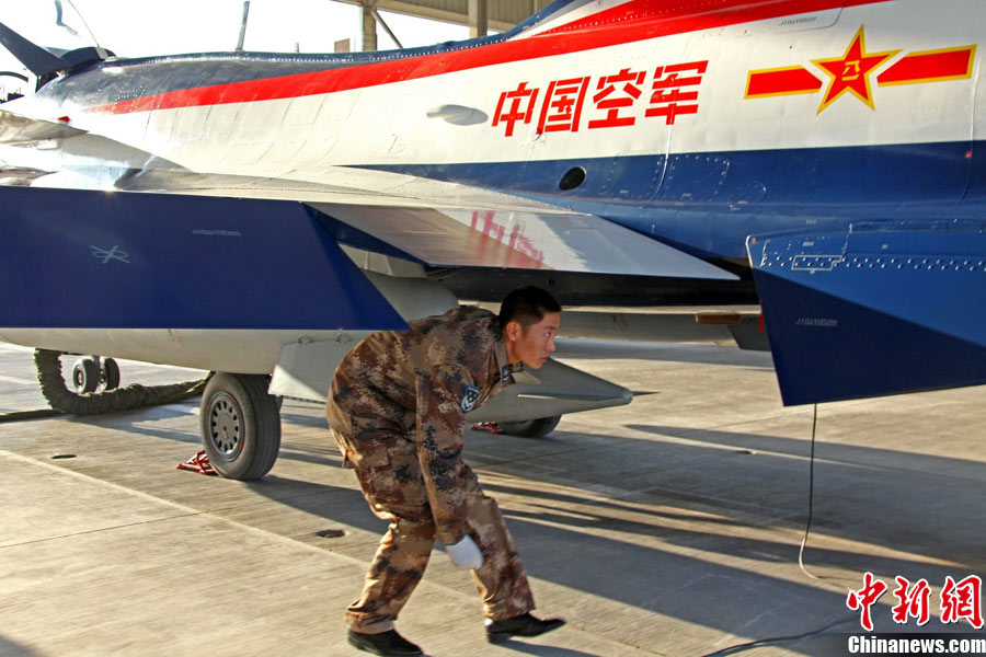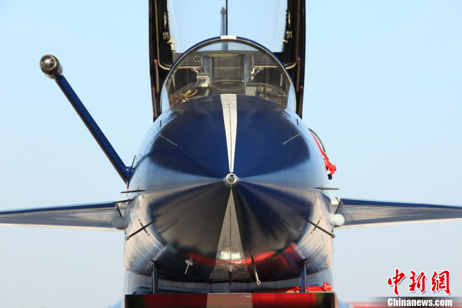 11月初,中國空軍八一飛行表演隊新涂裝的殲10飛機雙機起飛?哲姲艘伙w行表演隊7架殲—10戰(zhàn)機近日將飛赴珠海,參加11月16日至21日舉行的第8屆中國國際航空航天博覽會(珠海航展)。這是表演隊換裝殲—10戰(zhàn)機后,首次以新涂裝向世人正式亮相。空軍還將派出殲—8F、殲轟—7A、轟—6H、空警—200、直—8KA、直—9WA等7型飛機,參加這次國際性綜合航展。中新社發(fā) 譚超 攝