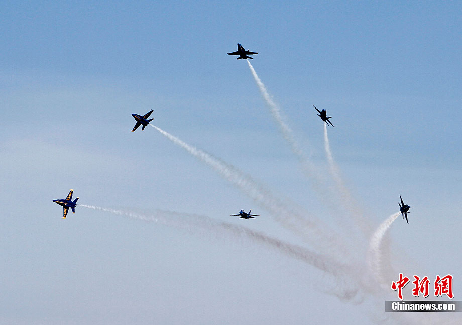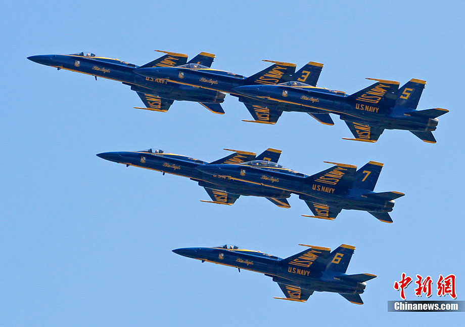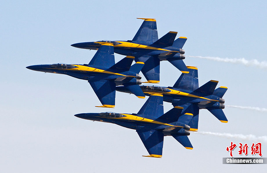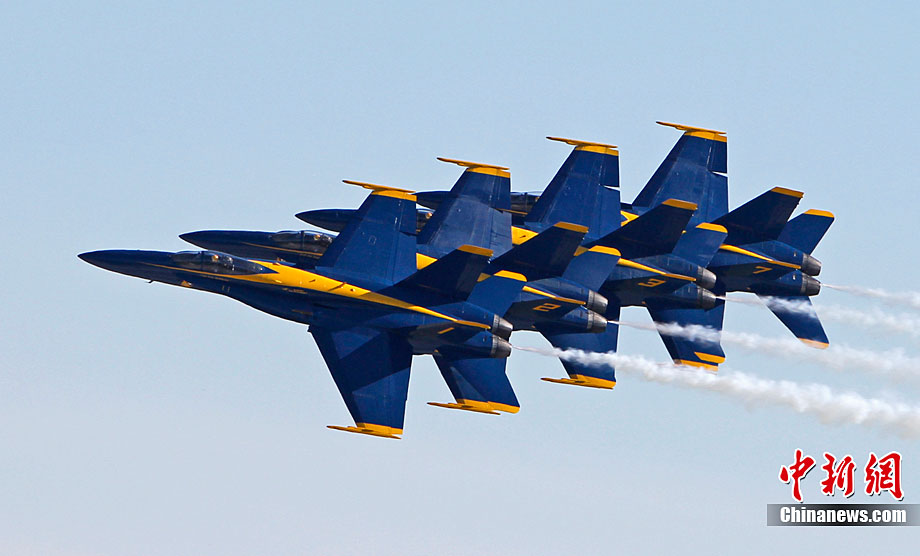 當(dāng)?shù)貢r間11月5日,美國邁阿密近郊的霍姆斯帝德空軍儲備基地為當(dāng)?shù)鼐用窈陀慰蜕涎萘司式^倫航空飛行表演。世界上最優(yōu)秀的特技飛行表演隊之一,同時也是目前世界上唯一一支屬于海軍航空兵的飛行表演隊--美國海軍“藍(lán)天使”飛行表演隊駕駛f/a-18“大黃蜂”戰(zhàn)斗機(jī),翱翔藍(lán)天,上演令人驚嘆,眼花繚亂的空中特技。